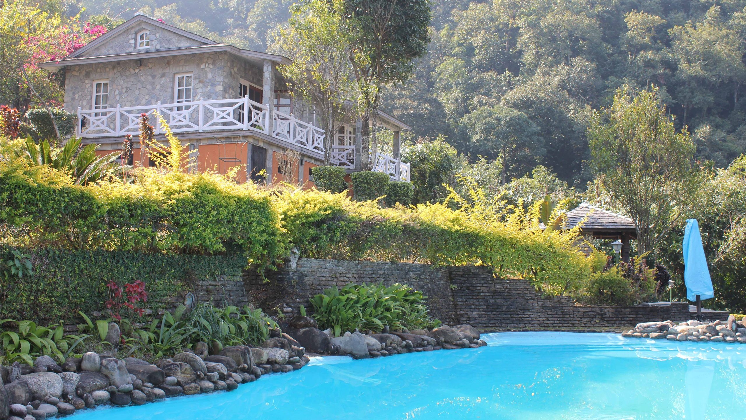 The resort is surrounded by chestnut, orange and other fruit trees, as well as coffee and cardamom bushes. The beautiful natural surrounds are echoed throughout the resort, creating a nourishing and healing environment, from traditional Ayurvedic remedies at the Himalayan Spa to a mountain spring water pool, and homegrown produce served at the restaurant.