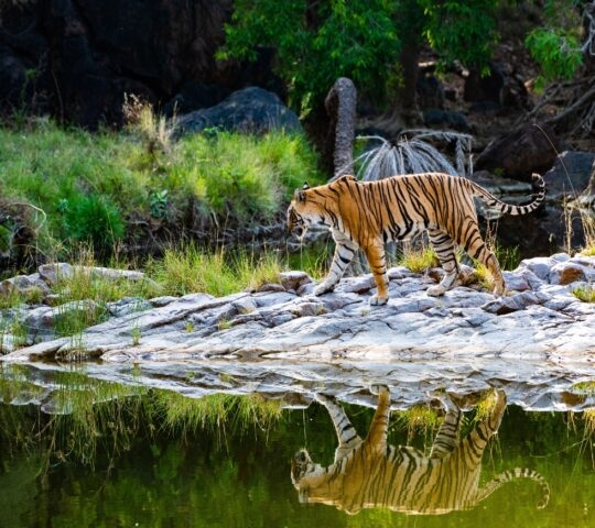 Located in the southeastern corner of Rajasthan, Ranthambore National Park is perhaps the most famous place to spot wild tigers in India – and for good reason. You’ll drive through the park in search of these beautiful and awe inspiring creatures with an expert guide who knows the park and its big cats like the back of their hand. As well as being a top tiger spotting destination, Ranthambore is a beautiful park to explore with the 10th-century fort towering over the surrounding plain, its crenellations now sun loungers for Hanuman langurs looking down onto the lakes below. The rest of the park’s jungle is littered with ancient temple ruins, often a favoured rest stop for wandering tigers.