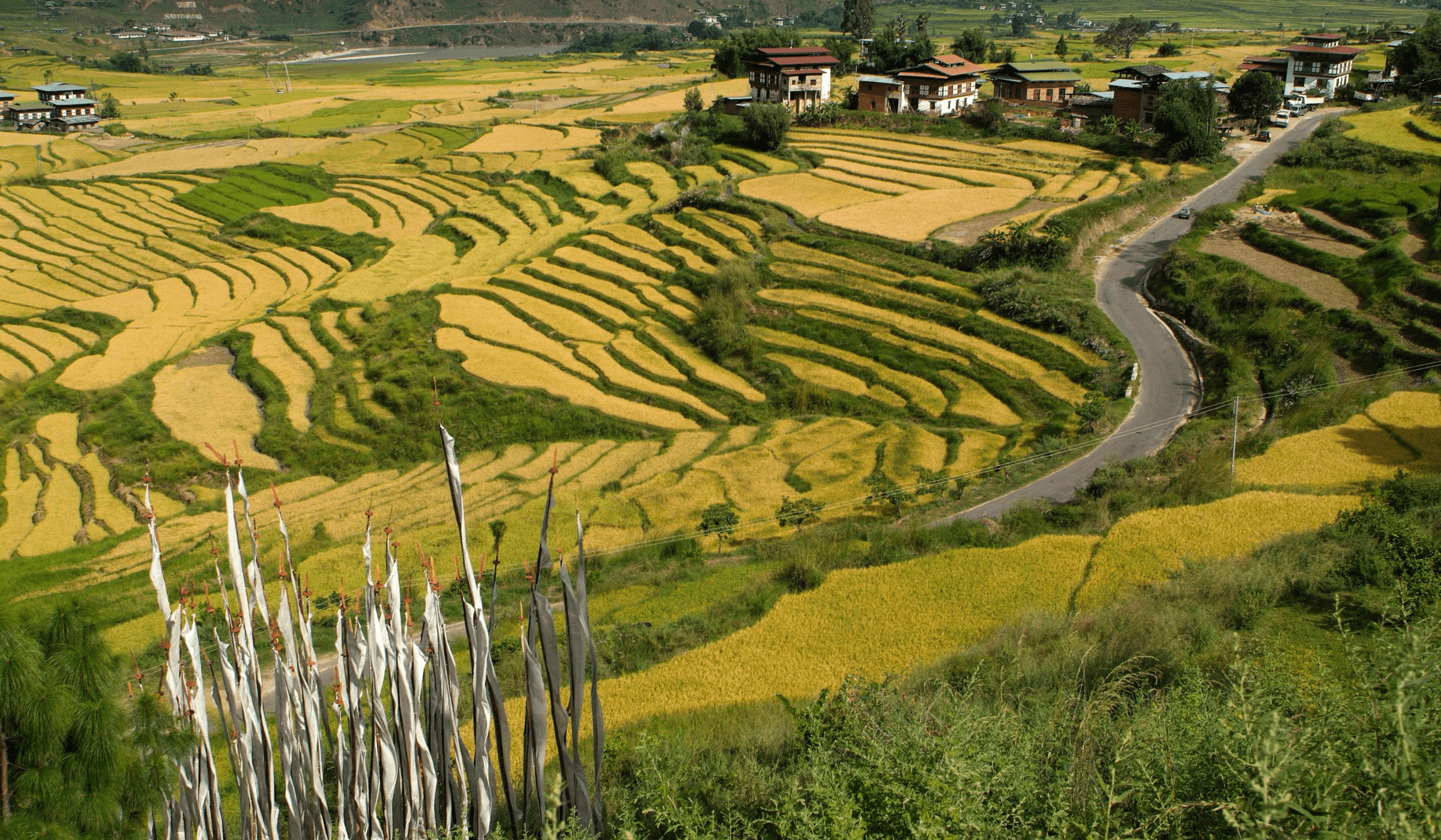 We begin and end this tour in the little town of Paro in the valley of the same name. One of the kingdom’s widest, it is covered in fertile rice fields crisscrossed by a beautiful meandering river.