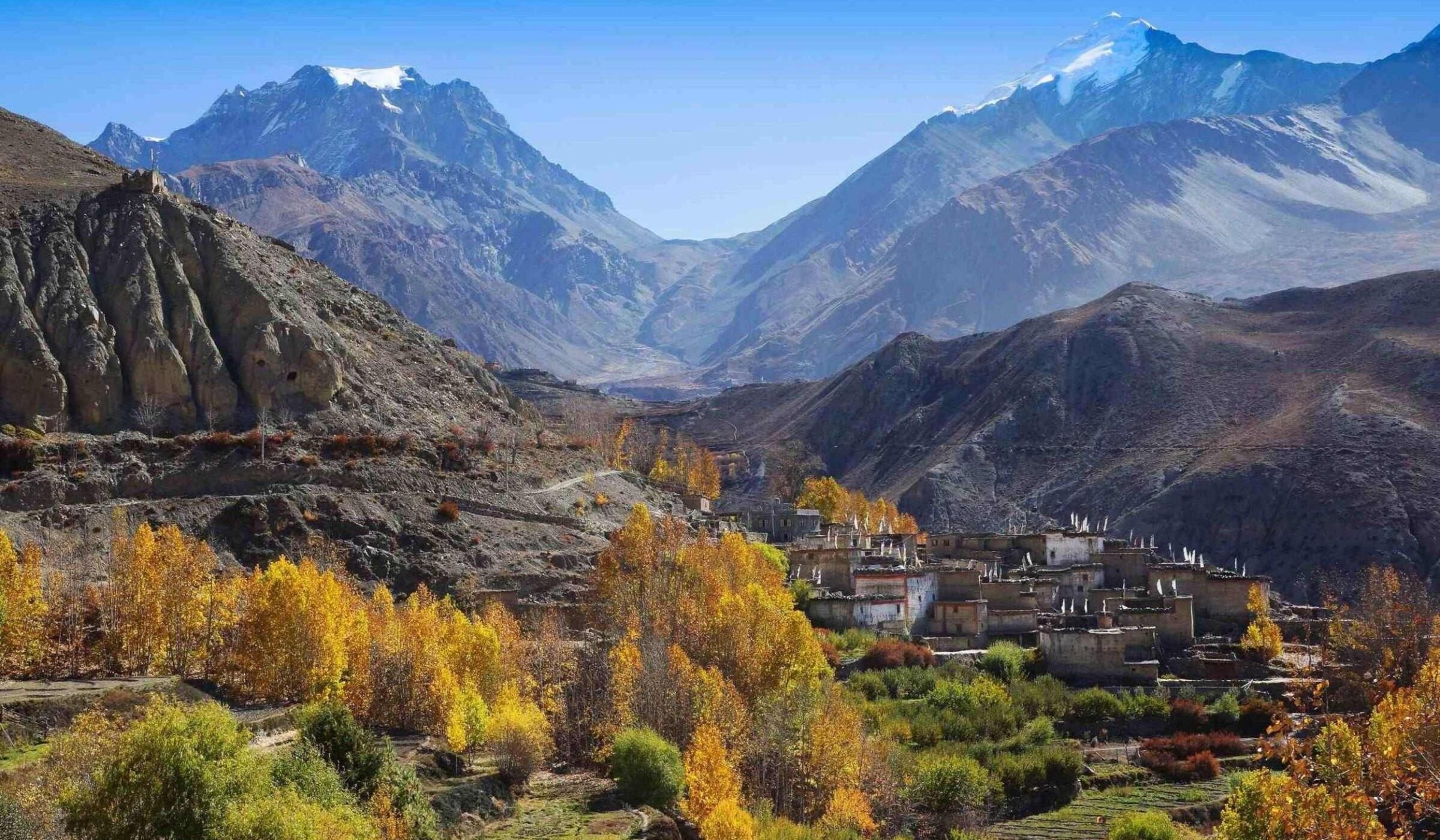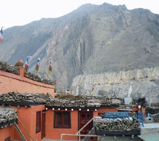 Sitting on a cliff-top above the Kali Gandaki river is Kagbeni. An oasis of green fields among rocky, arid mountains, with the snowy peak of Mt Nilgiri looming grandly behind it, this ancient, partially ruined citadel town, with its narrow alleyways and tunnels is fascinating. Wander past the ancient King’s Palace and visit the 800 years old, brick-red Sayka Gompa.