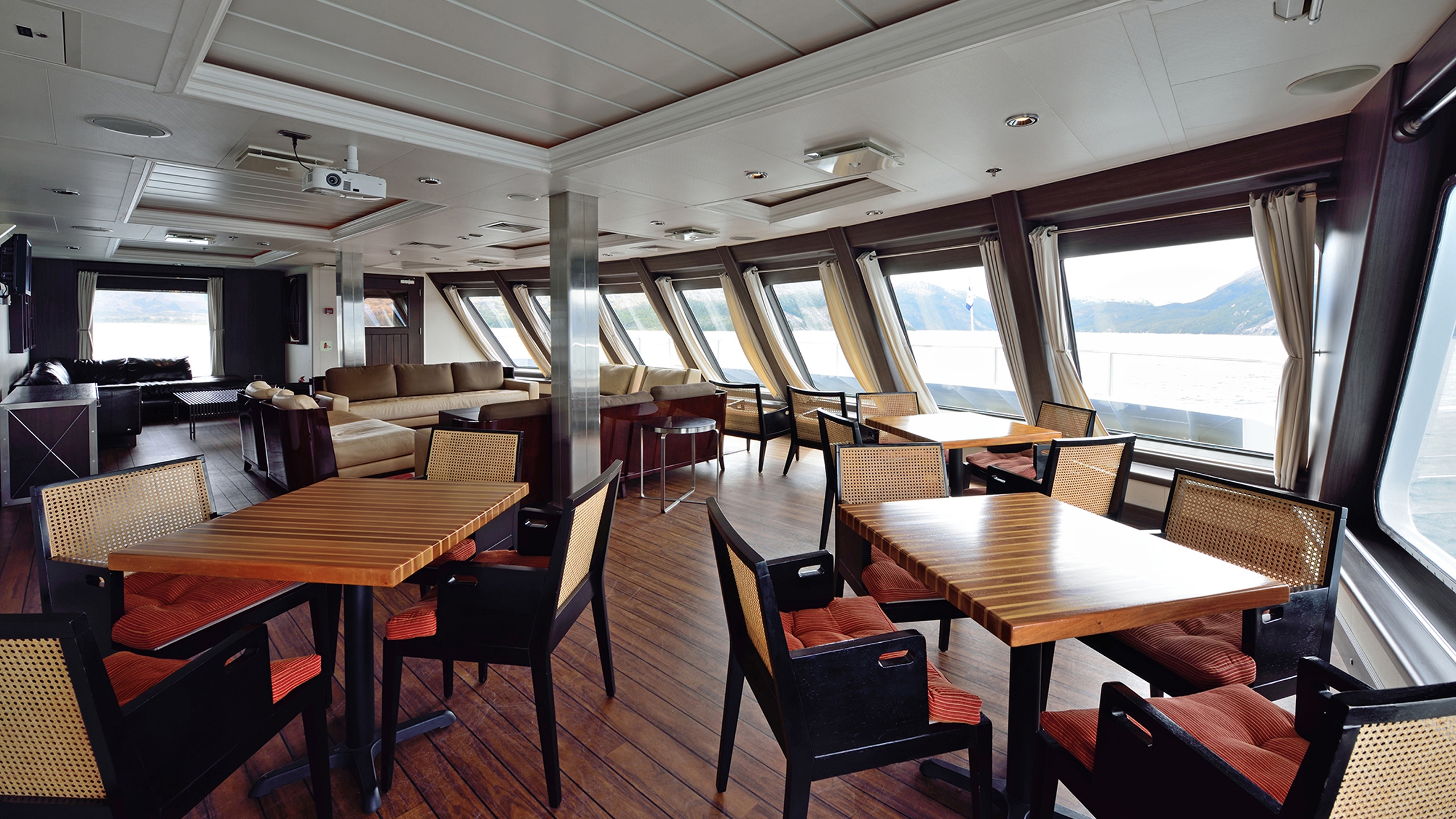 The ship has three lounges, a dining room, an exercise room and of course a spacious open deck area from which to observe the enchanting scenery and wildlife at all times.