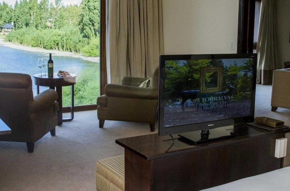The rooms and communal areas are decorated with 160 paintings and sculptures from an exclusive collection, each room themed around a different South American Artist. Set on the lake shore on the outskirts of Bariloche, the hotel is made up of around thirty rooms, many with stunning views of the lake. Facilities include indoor and outdoor heated pools, health club, outdoor jacuzzi, private pier and boat and an excellent restaurant.