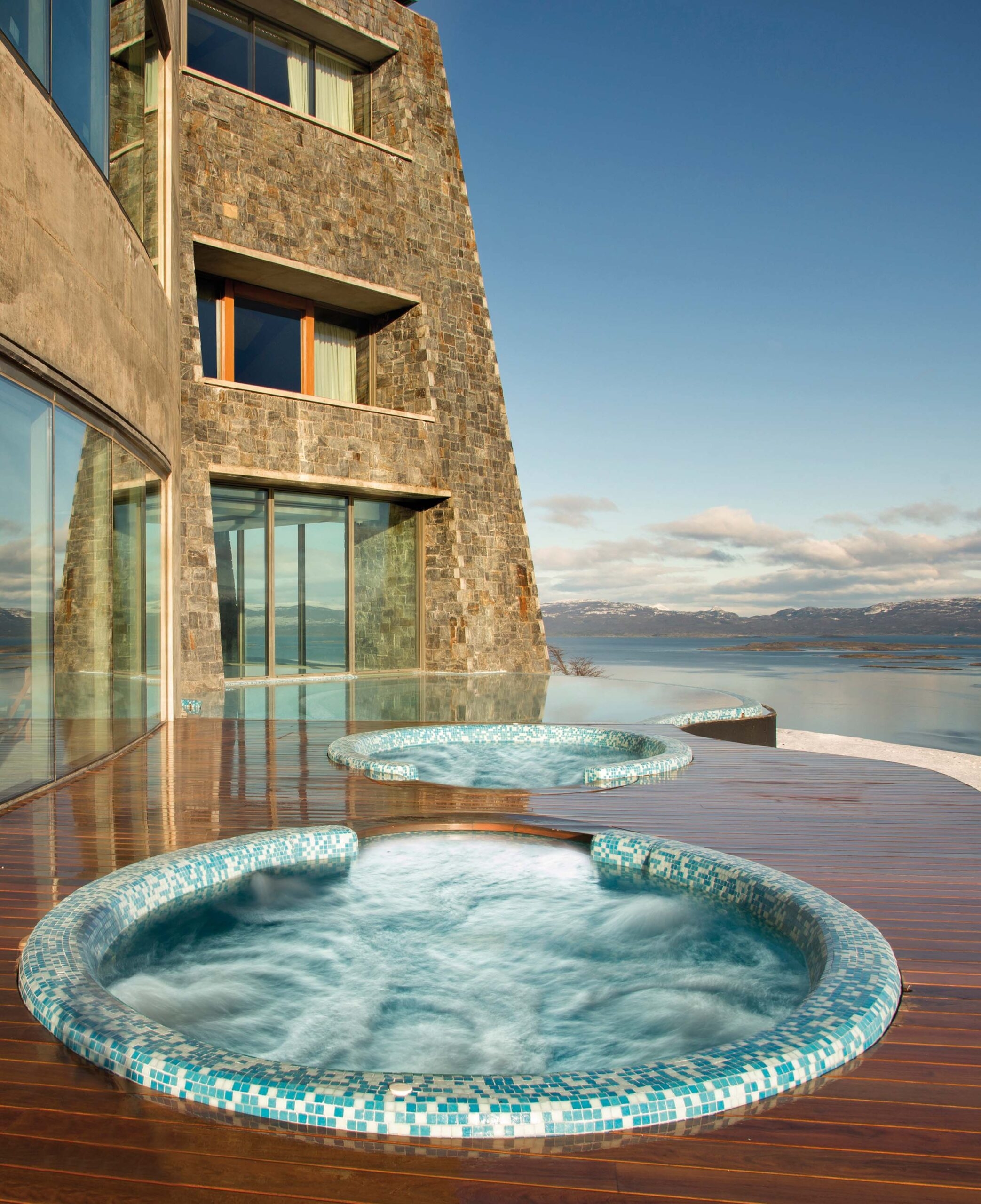 Geothermal air-conditioning and humidity controls ensure a comfortable temperature when the weather outside is changeable, and furnishings feature local materials, with an interior made of stone, wood and marble transforms the landscape inside the hotel. The hotel also offers a wonderful spa and pool that makes the most of the views.