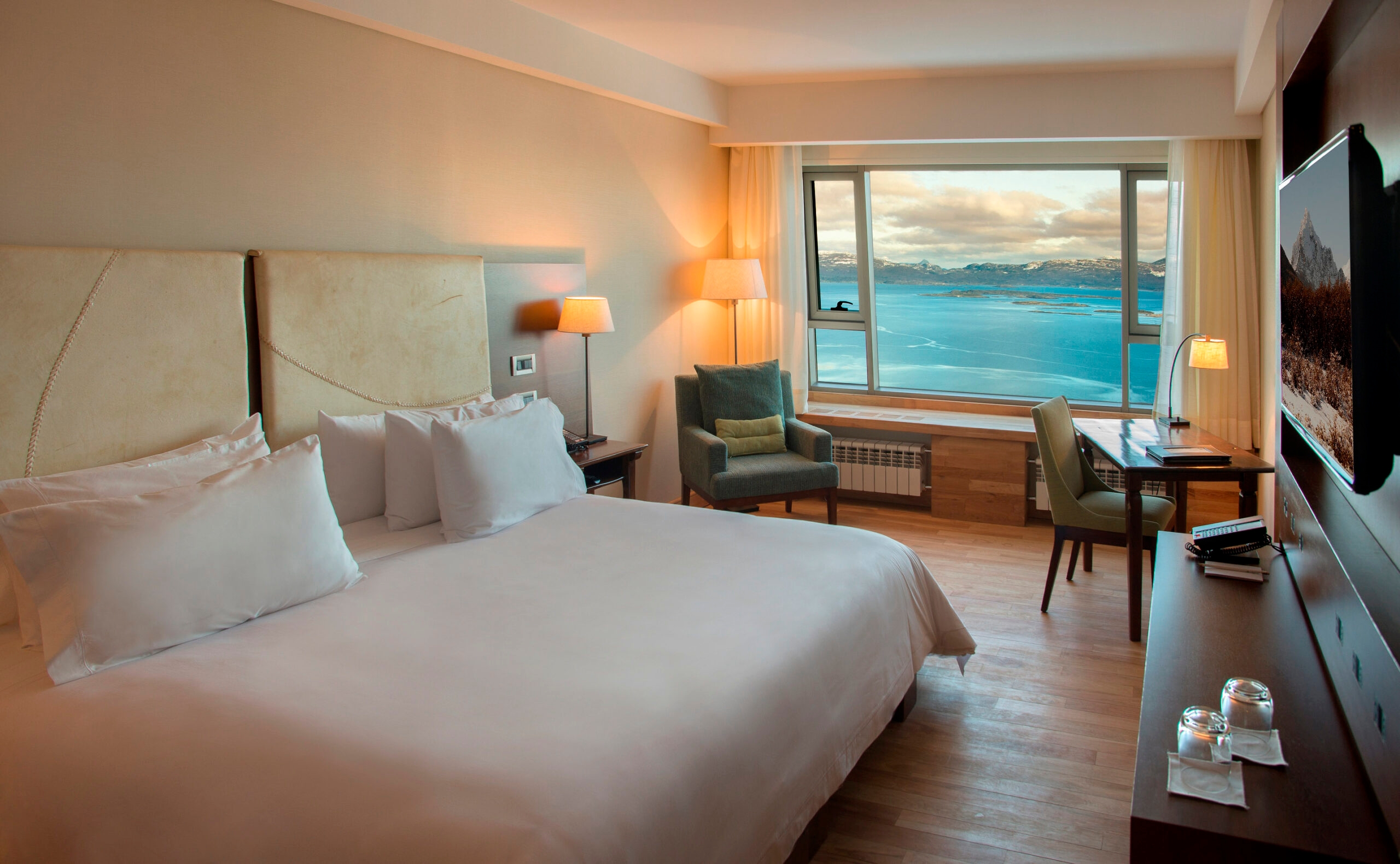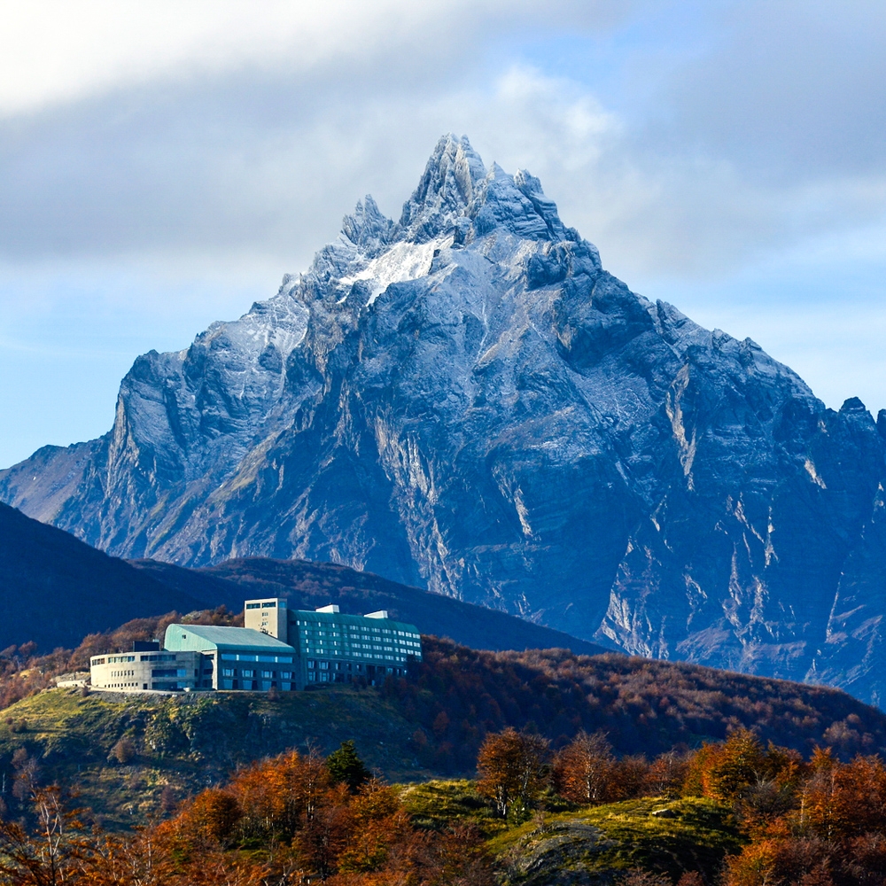 The five-star hotel, built according to sustainable architectural standards, offers fascinating views of the Beagle Channel. 117 modern rooms and fourteen luxurious suites enjoy large panoramic views: to the south, the Beagle Channel and Ushuaia city; to the north, valleys, mountains and the Natural Reserve. Look out for Mounts Cortes, Olivia, and Cinco Hermanos from parts of the hotel.