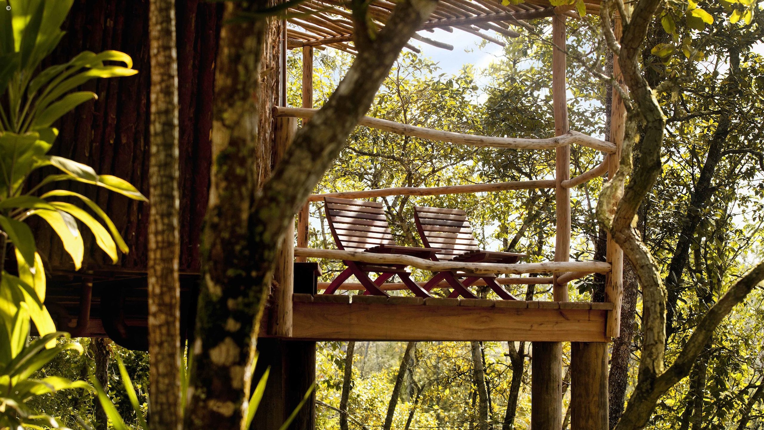 Idyllic rainforest lodge overlooking mystic waterfalls