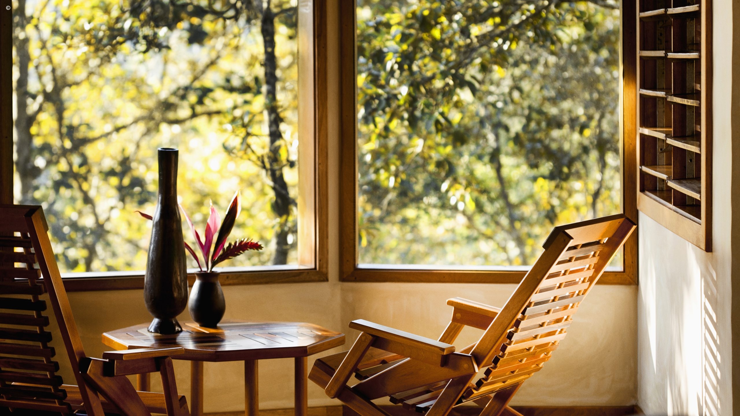 Idyllic rainforest lodge overlooking mystic waterfalls