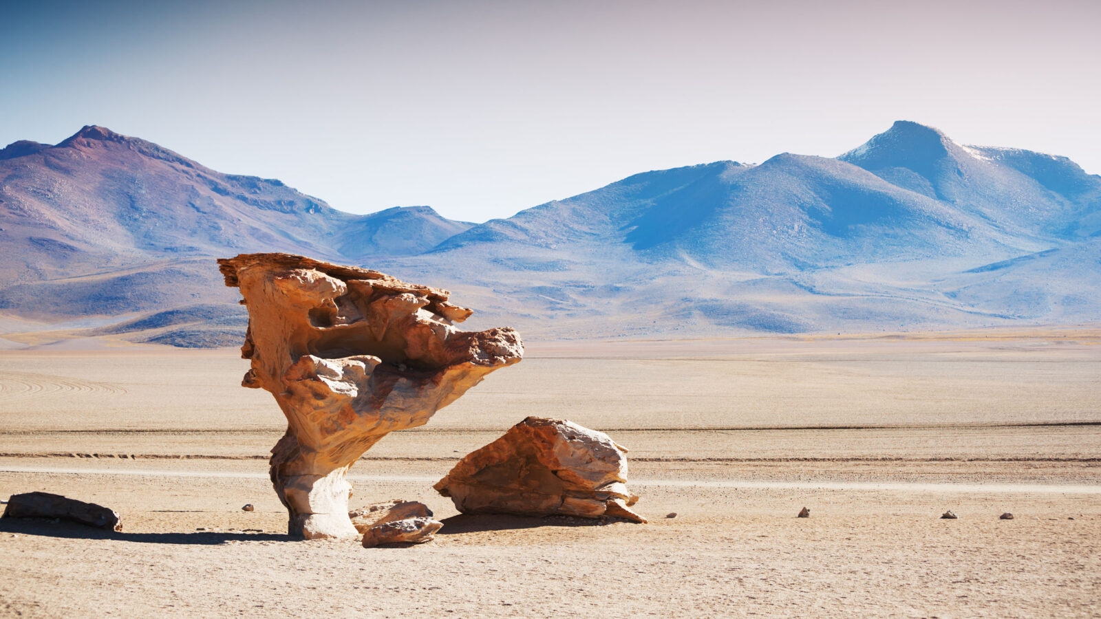At the southernmost tip of Bolivia, bordering Chile and Argentina, the Eduardo Avaroa Andean Fauna National Reserve is an otherworldly looking protected area ranging in altitude between 4,200m (13,800 feet) and 5,400m (17,700 feet). It’s an extreme landscape of puna desert, active volcanos, hot springs, geysers, saline lakes, sulphur clouds and surreal wind-hewn rock formations.