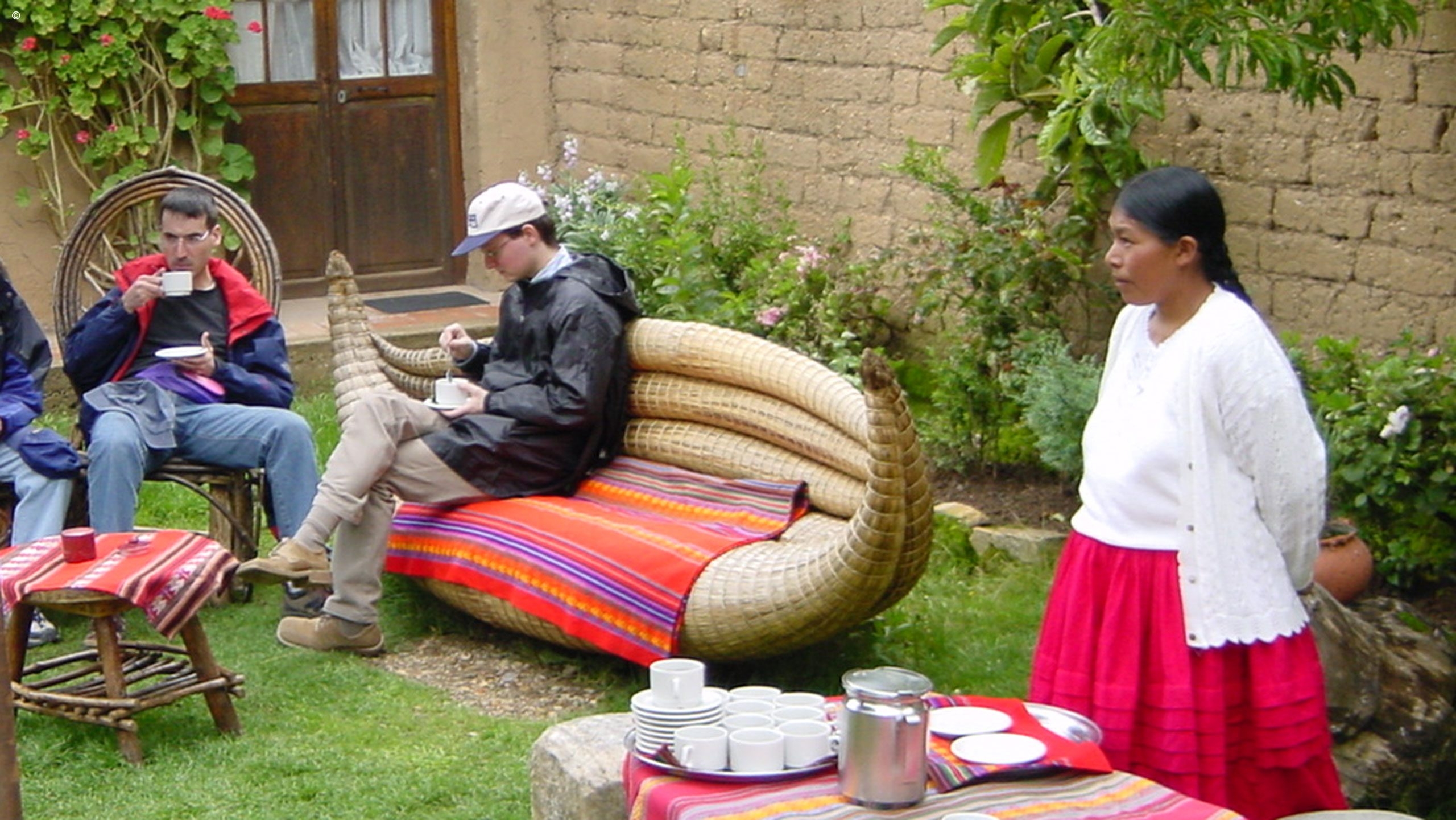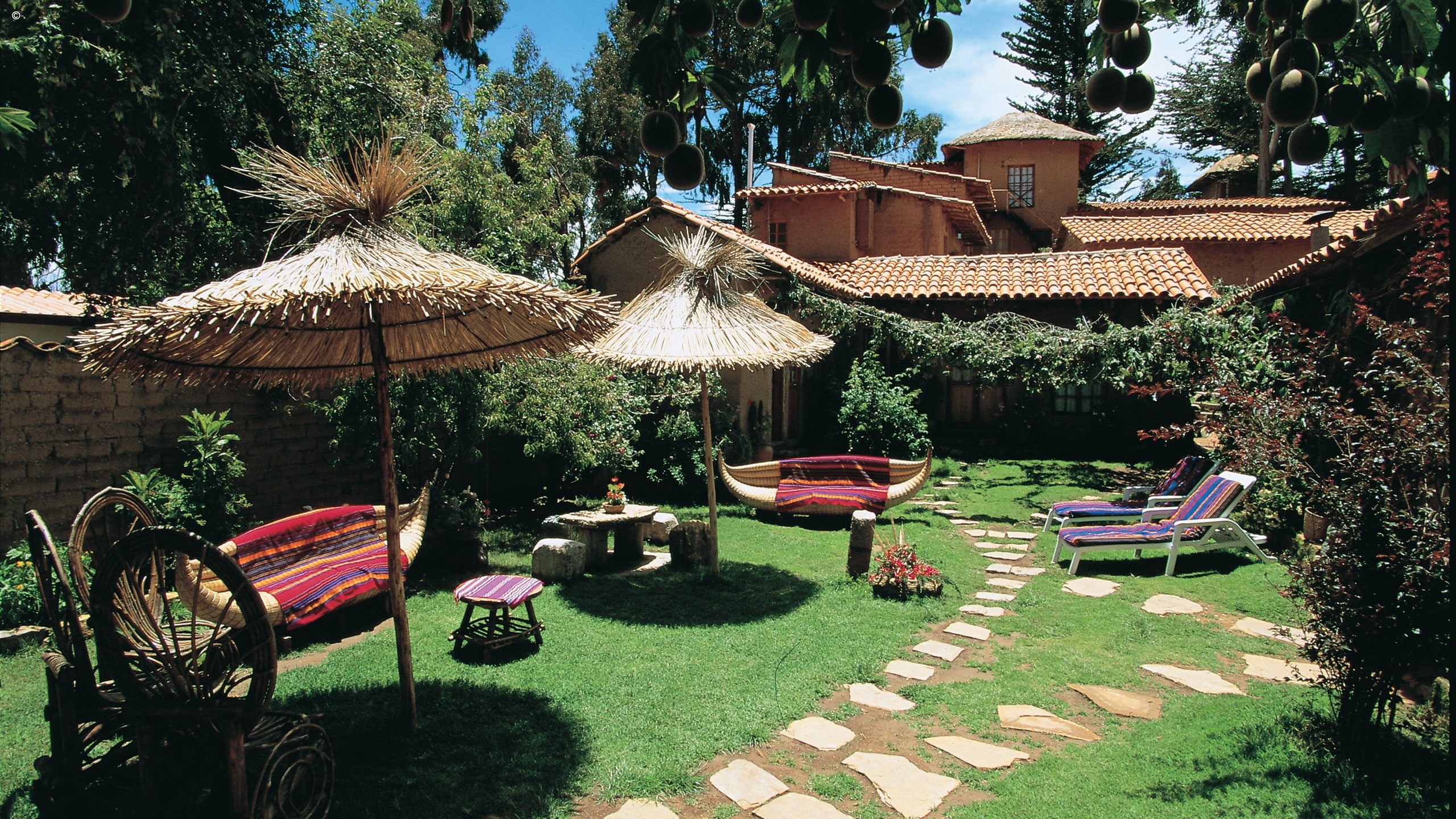 Posada del Inca’s sand-coloured lodges are surrounded by beautifully kept tiered gardens filled with flowers and have sweeping views of the lake and the snow-tipped Andes.