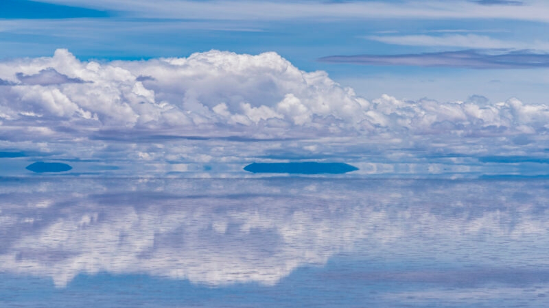 During the wet season, these salt flats flood and they transform into a vast mirror which reflects the sky and seems to defy reality. The lack of wind and clear skies create the perfect conditions for achieving images that appear to lose all perspective. As the surroundings do flood, this can cause some issues for visiting other nearby attractions.