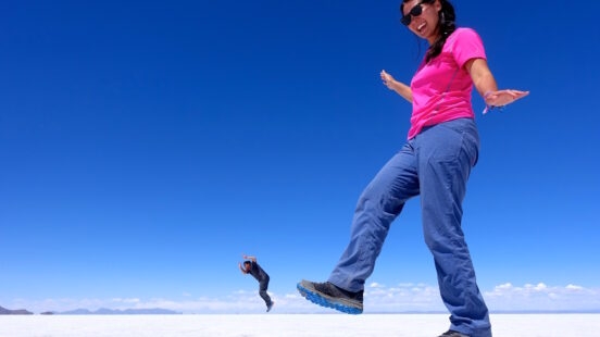 Jacada Tribe member Roy Lamsam took this fun photo with his wife Sarah during his trip with Jacada Travel to the salt flats