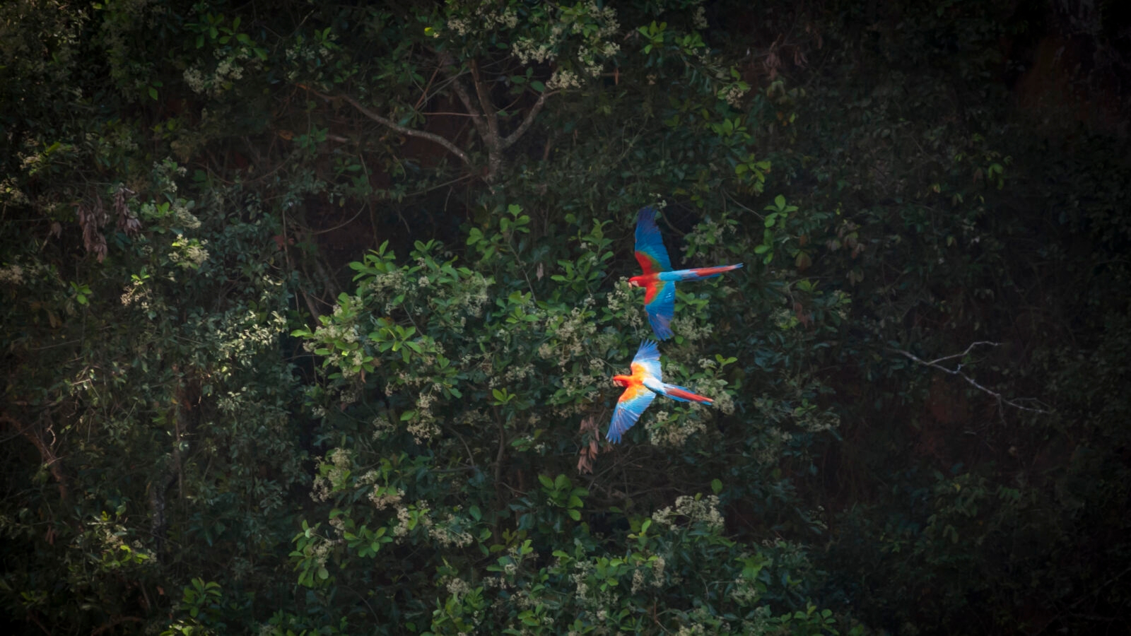 Hiding among the arid grasslands; the allusive jaguar, the less graceful giant anteater and the giant armadillo. While up in the region’s unique twisted trees you’ll spot hundreds of different bird species, such as the gravely endangered Spix’s macaw and the fascinating red-legged seriema to name a few. One of the most emblematic animals in the region is the maned wolf – a curious creature with golden-red bat shaped ears, long legs like a deer, face of a fox and the body of a wolf. Plant life is also exciting here, with over 80 species of tree, and it is here that you will find beautiful gallery forests lining old waterways in otherwise arid landscapes.