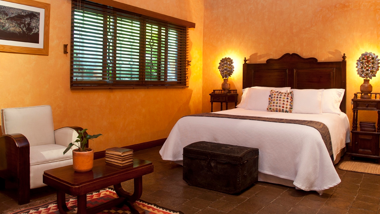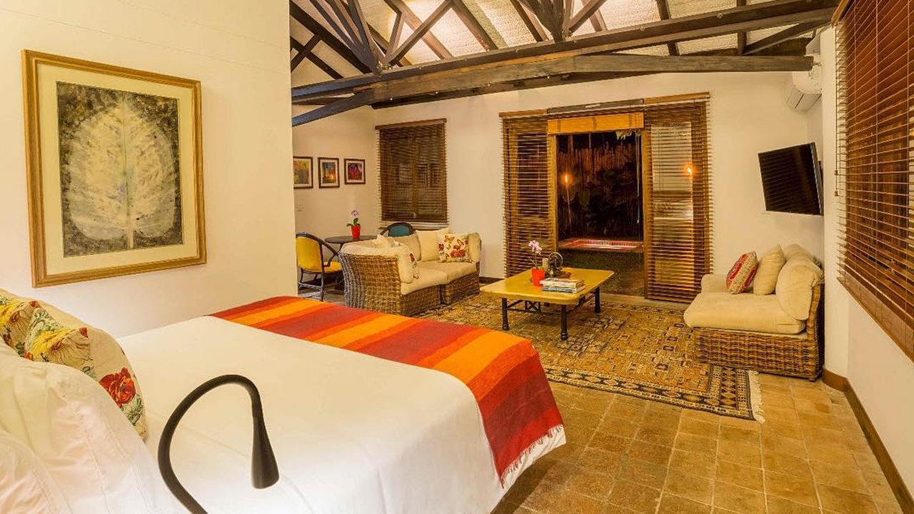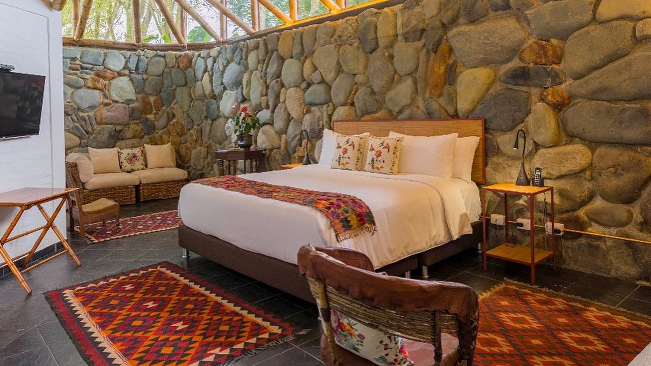 The house is in the style of a typical Colombian farmhouse with eclectic details such as colourful colonial tiles and furniture and indigenous inspirations and art, to more international antiques and furnishings. However, its wraparound balconies and central courtyards root the hotel firmly in the region and welcome in its serene views and laid-back countryside temperament.