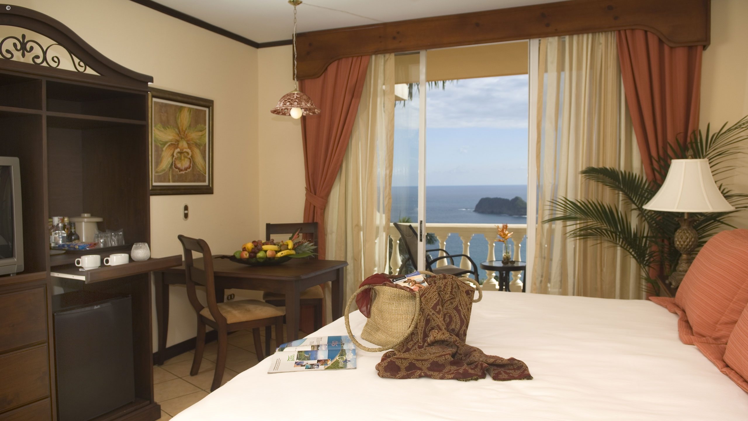 The resort’s 129 spacious rooms and suites blend a relaxed tropical style with contemporary comfort, and some include private balconies. The décor and grand style of the hotel is more European than Costa Rican with conquistador and Hispanic influences. High ceilings, heavy and ornate wood furniture with a touch of faded glamour does hold a certain homage to the colonial past. The rooms are well-appointed with the modern amenities, although if you are after a spacious, light room with a good view of the ocean or gardens then anything above the category of premium plus is recommended.