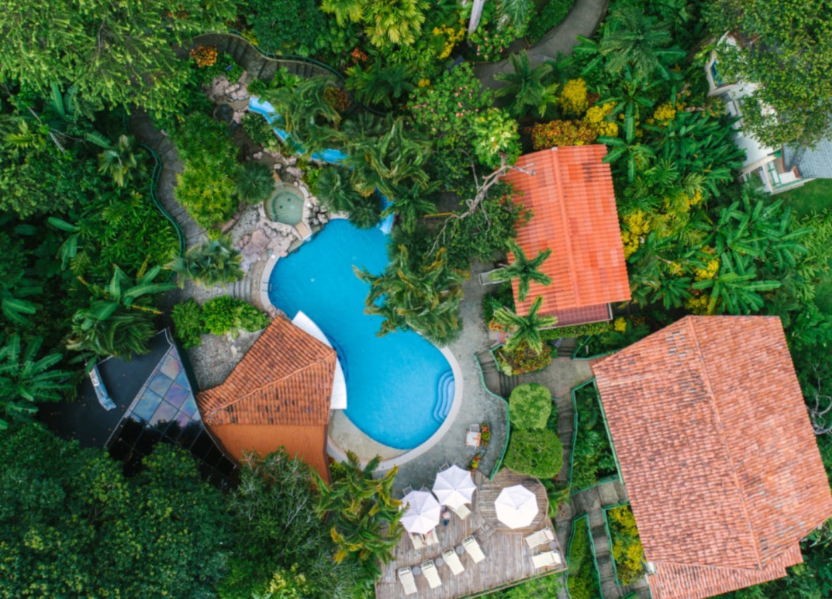 Colourful, tropical interiors, stained glass windows and lots of natural wood illustrate the very Tico character of the hotel. There is also a well-appointed spa offering massages and beauty treatments, two restaurants, a butterfly garden, wildlife centre and even a 45-seater cinema.