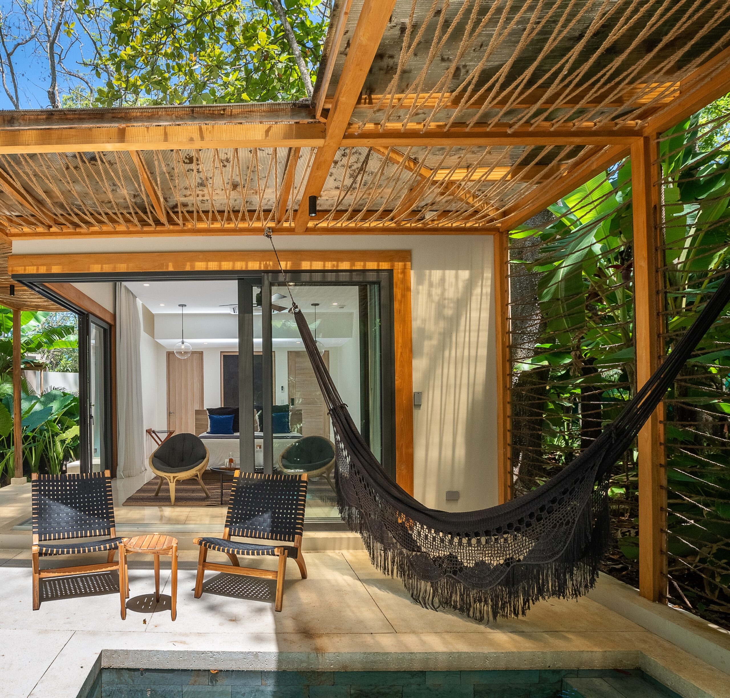 At Nantipa, every detail is designed to enhance your connection with nature and the ocean. The ‘Ninta’ bungalows, inspired by the Chorotegan word for ‘beach,’ include a spacious terrace, a private plunge pool and floor-to-ceiling glass doors that open to stunning ocean views.
