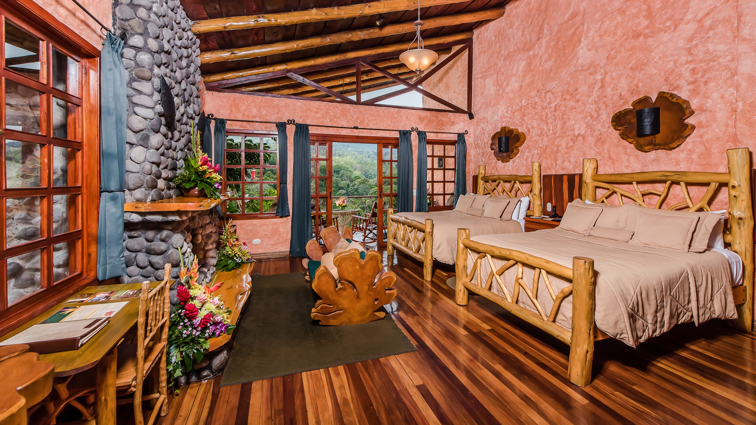 Located about an hour north of San Jose in a private eco-park and reserve, the intimate and romantic Peace Lodge enjoys a wonderfully interactive setting with nature.