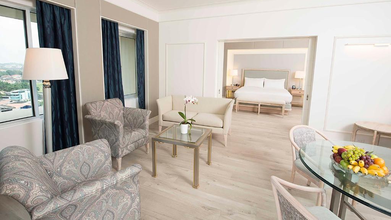 Recent refurbishment means that the interiors are elegant and contemporary. Features include a large outdoor pool area, an excellent spa and a choice of different restaurants. There is also an adjoining complex with shops and banks.