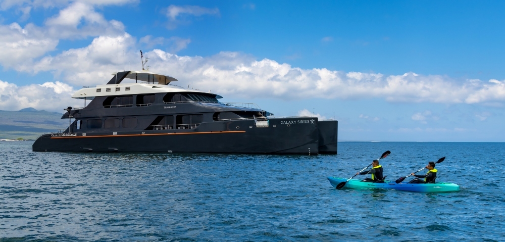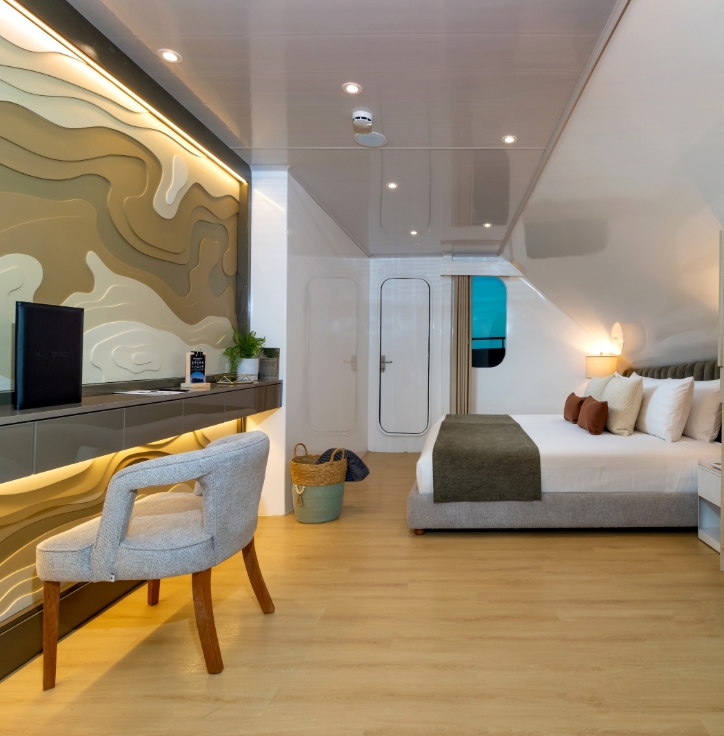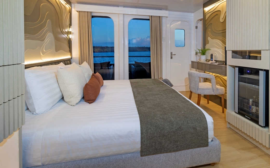 Enjoy an unforgettable adventure in the Galápagos Islands aboard the luxurious Galaxy Sirius. The spacious double staterooms with ample balconies are designed to offer a grand and comfortable experience, with a luxurious king-size bed, a private bathroom and large windows that provide breathtaking views of the Galápagos Islands.
