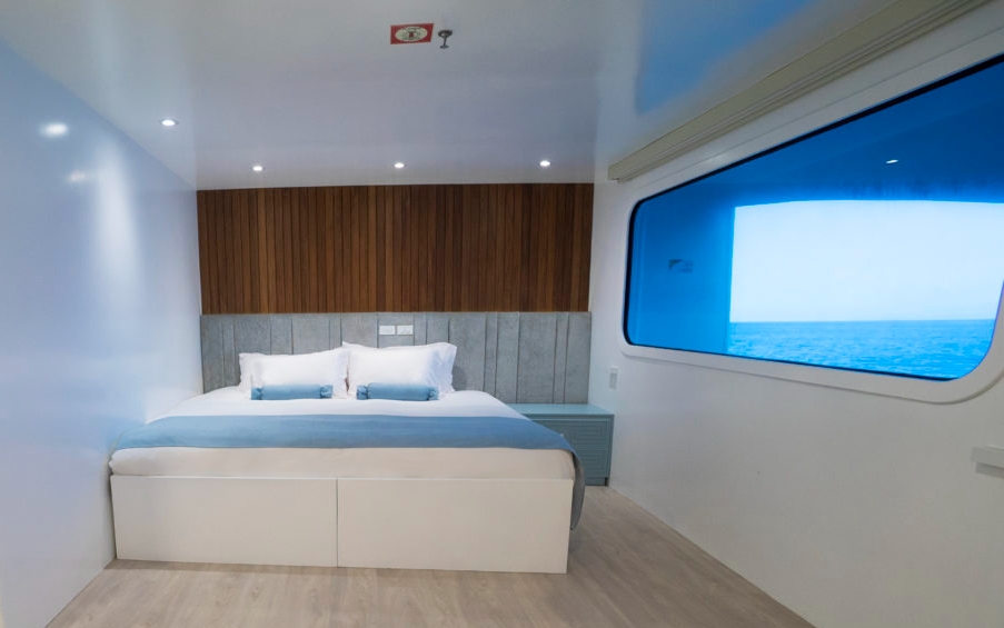 With a capacity for only 16 guests with eight very spacious cabins (the top four are 32m² in size) all with their own private balconies, this is a cruiser that prizes an intimate and comfortable Galápagos experience for its guests.