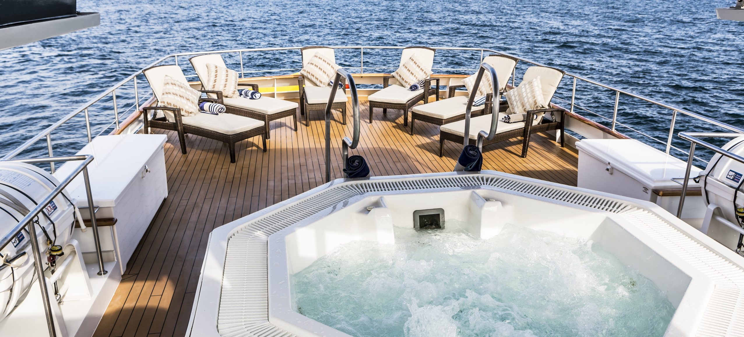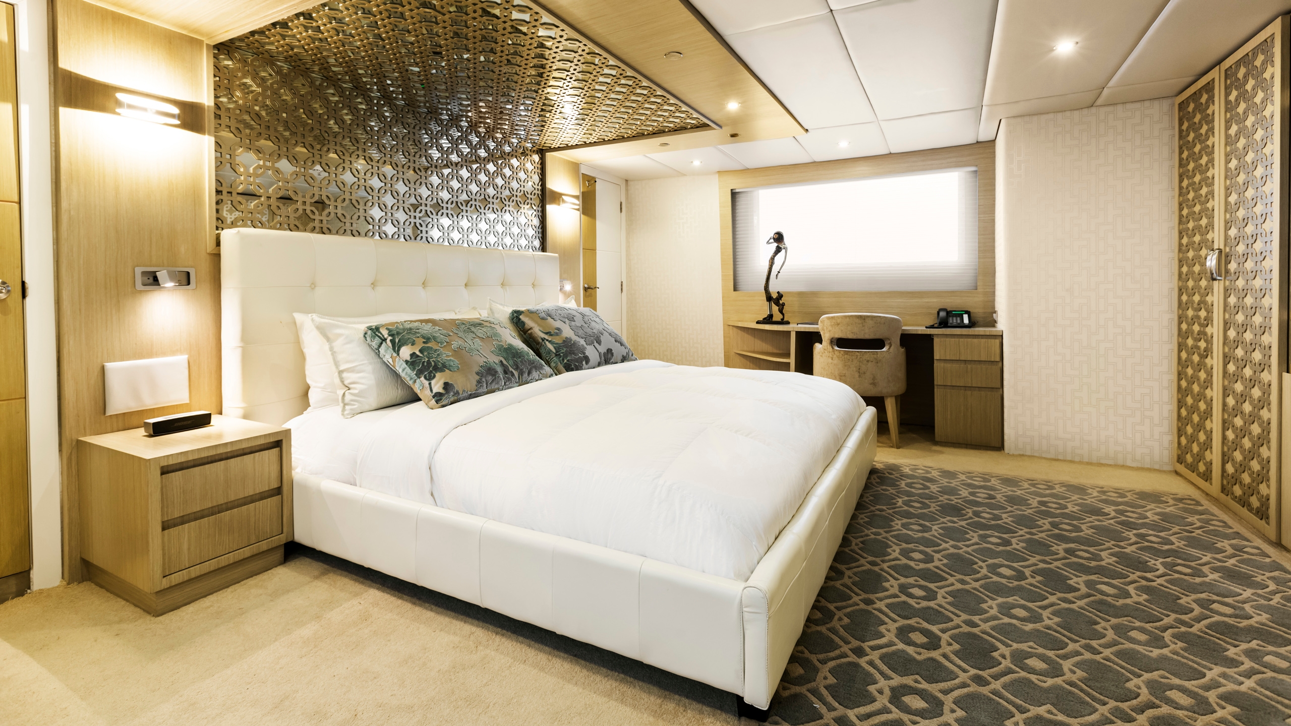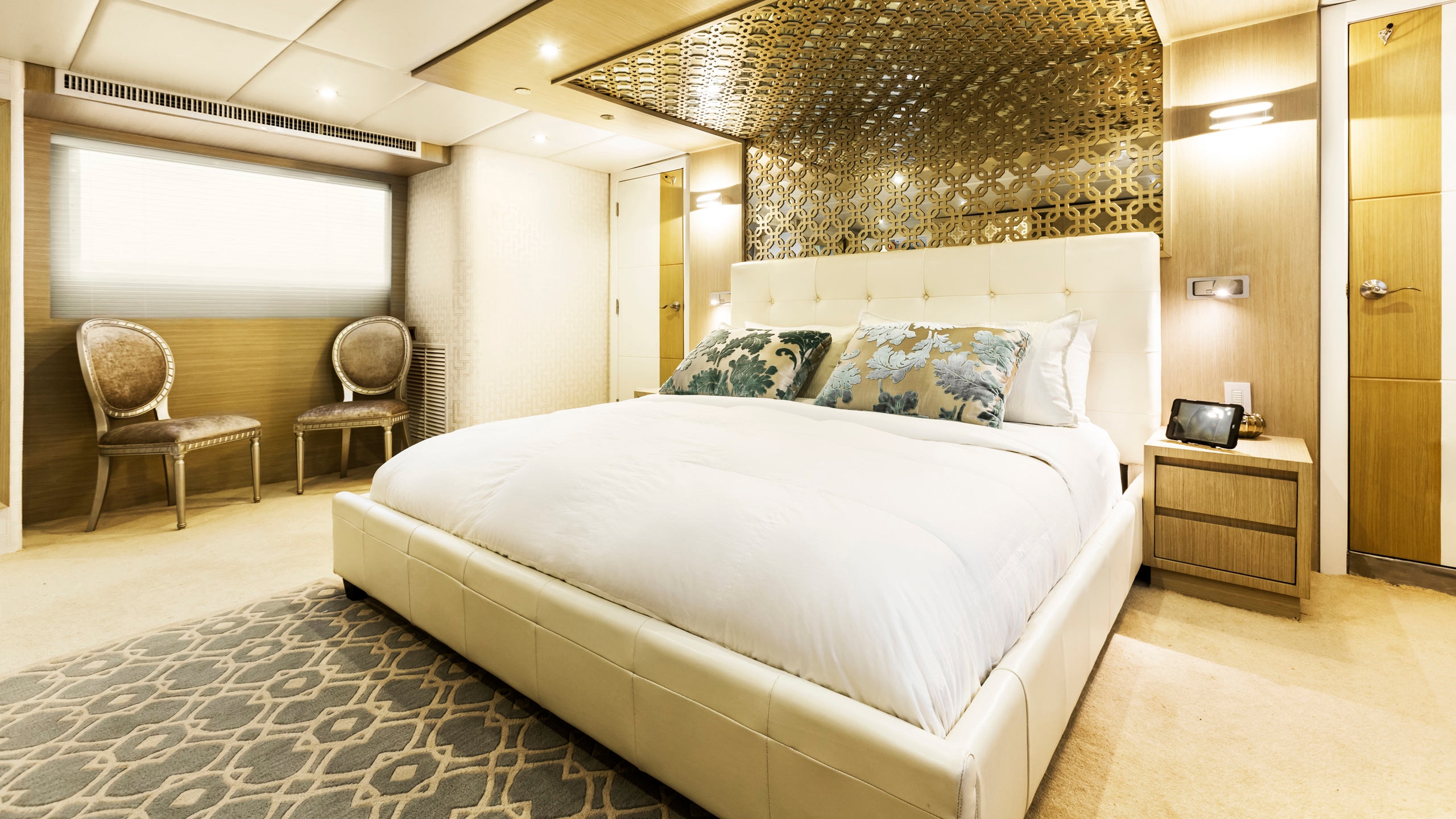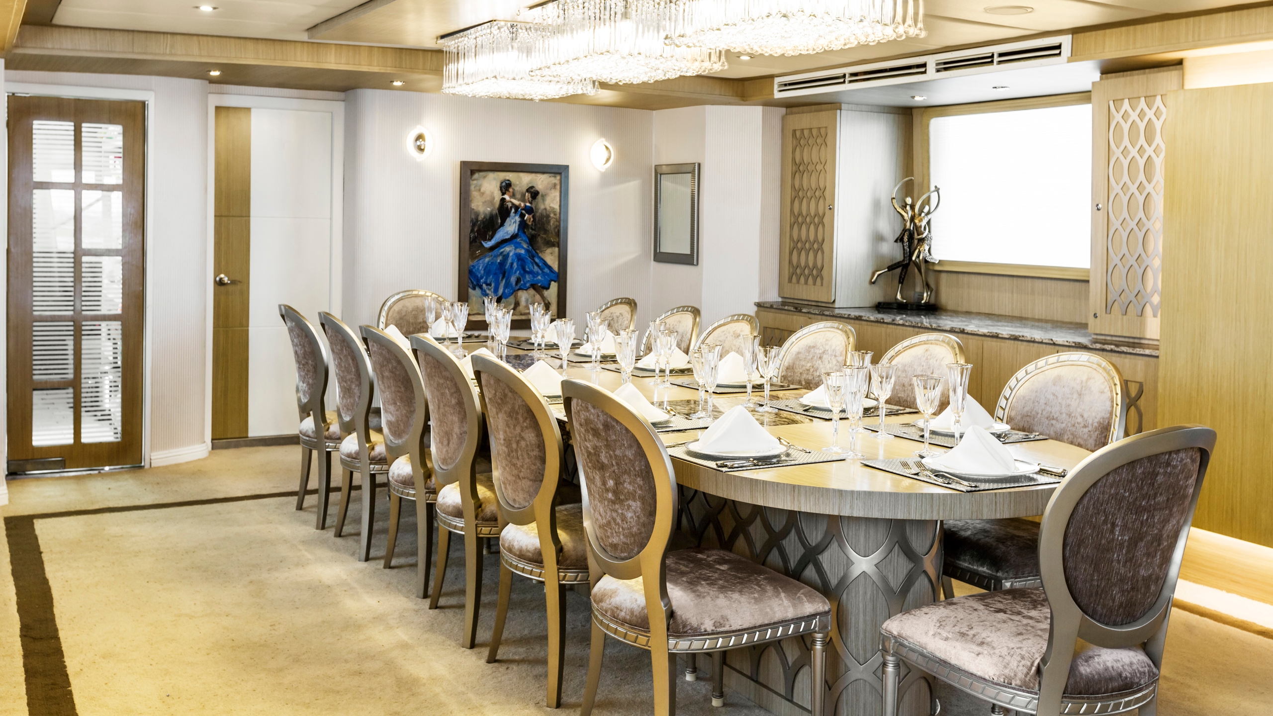 Exuding elegance, rooms are dressed in soft colours and furnishings for complete style. With four guest staterooms, two VIP staterooms and one lavish Master Suite – with private access to an outdoor lounge – your friends or family have bundles of private space to enjoy. Besides panoramic windows, each guestroom also features a private balcony for those spectacular island views.