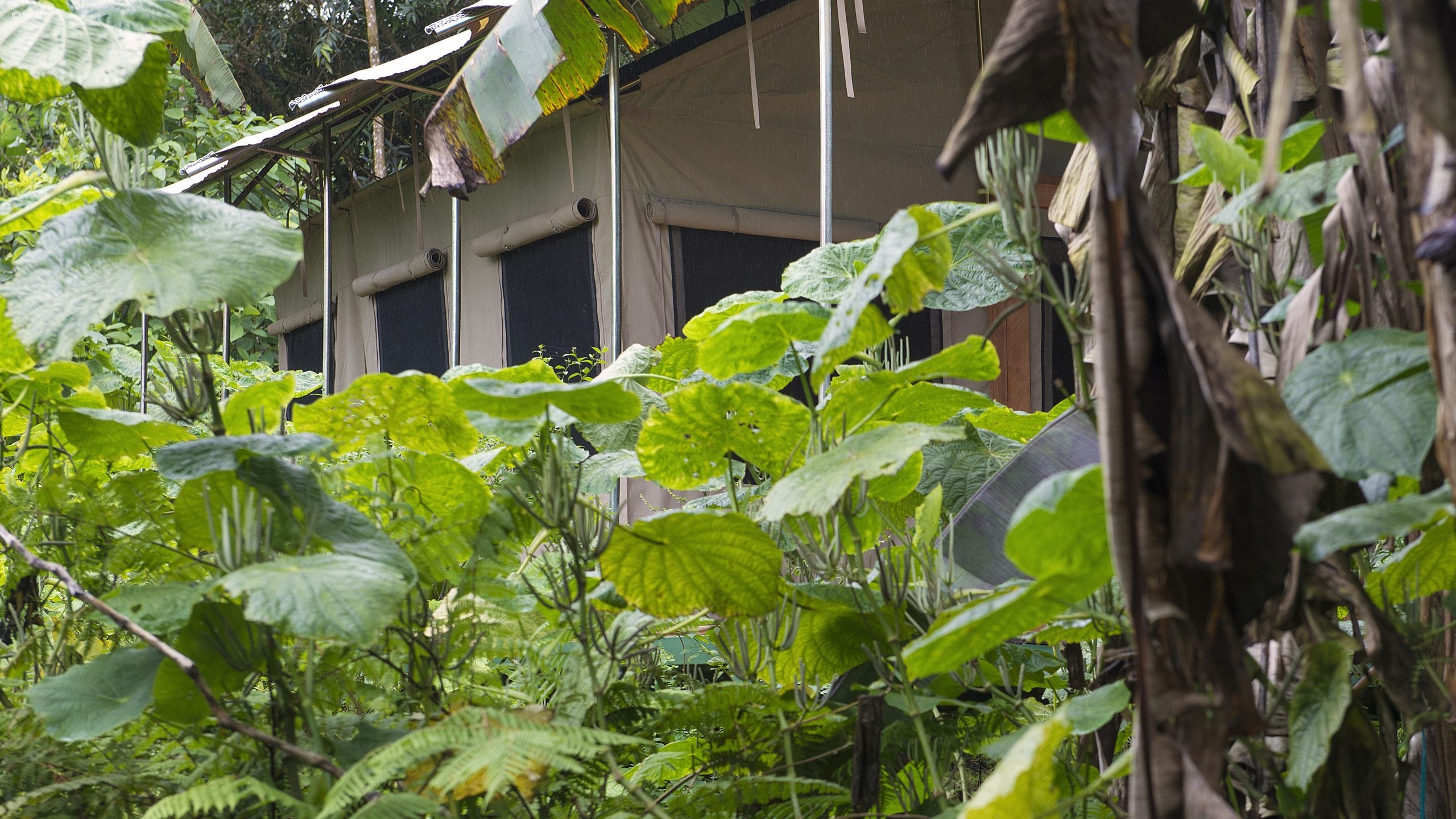 16 large safari-style tents sit on hardwood decks and leaving a minimal footprint on the 16 hectare (40 acre) forest reserve. The tents are scattered around the main building, a strikingly modern piece of architecture that is the social hub of the lodge.