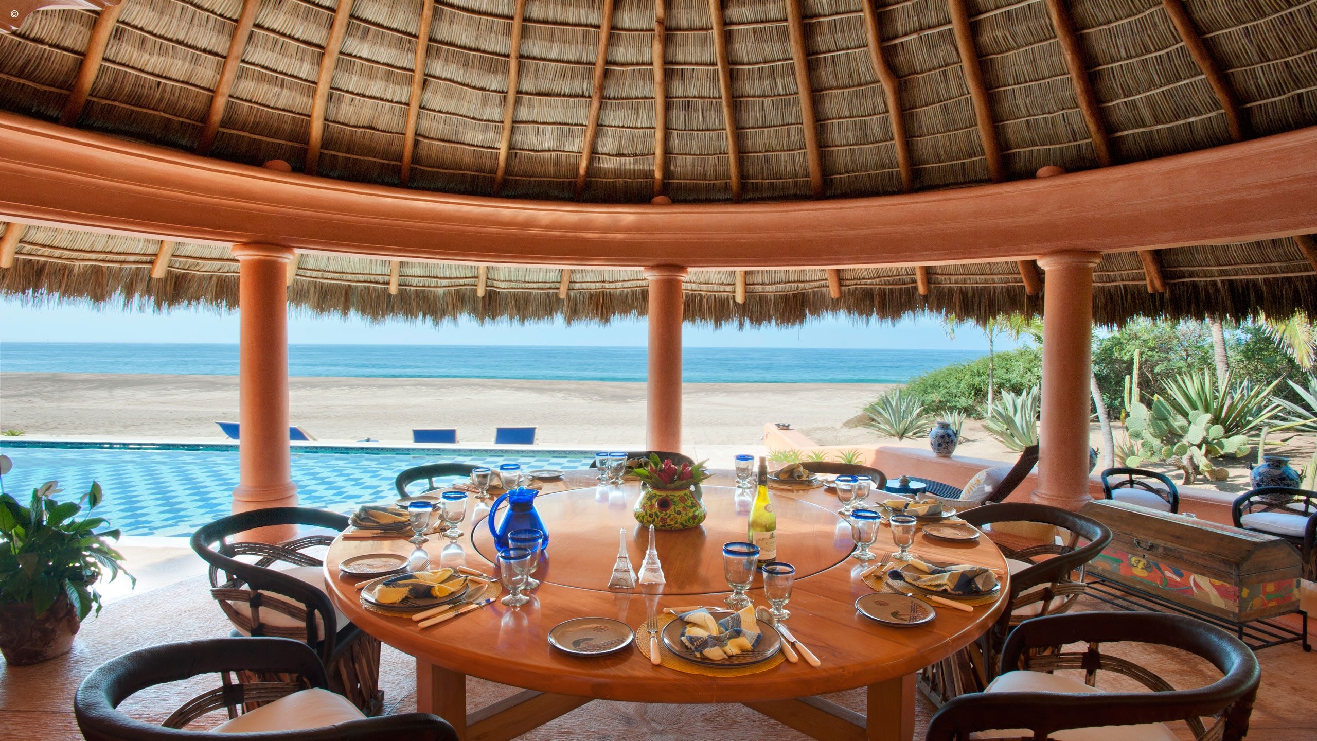Dine at the sheltered palapa followed by a dip in the spectacular tiled pool on the beach. Retreat at the end of the day in the Master Suite where you can take in the panoramic views and idyllic scenery from your private terrace.