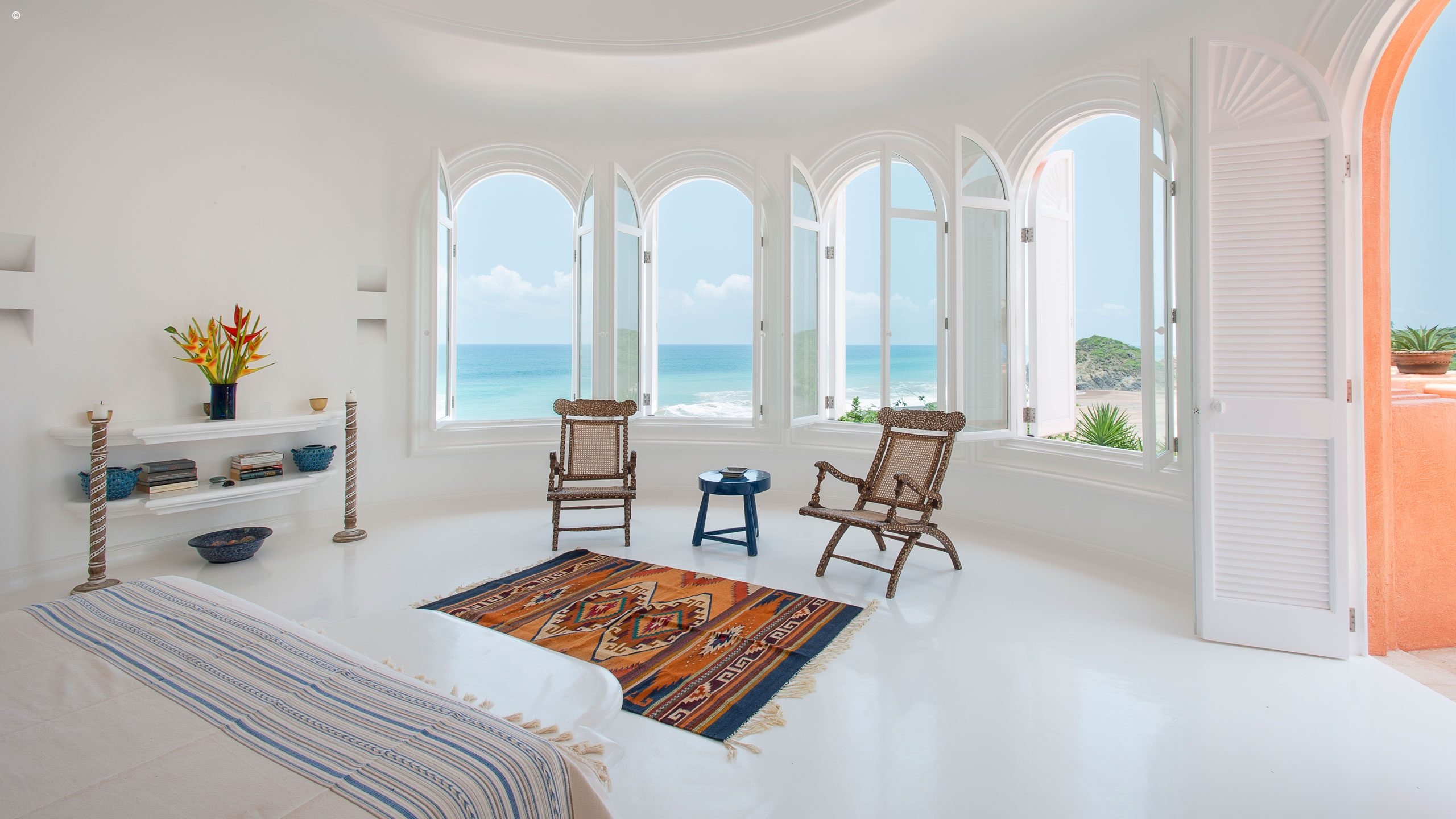 Described as a smaller version of the main Casa Cuixmala, the majestic La Playa is of a rare breed. Enjoy utter seclusion and impeccable facilities with a butler and cook service as well as access to all the amenities of the Cuixmala estate. La Playa has a stunning interior with serene white walls that elegantly contrast the colourful furnishings and big beautiful windows that allow light to pour in.