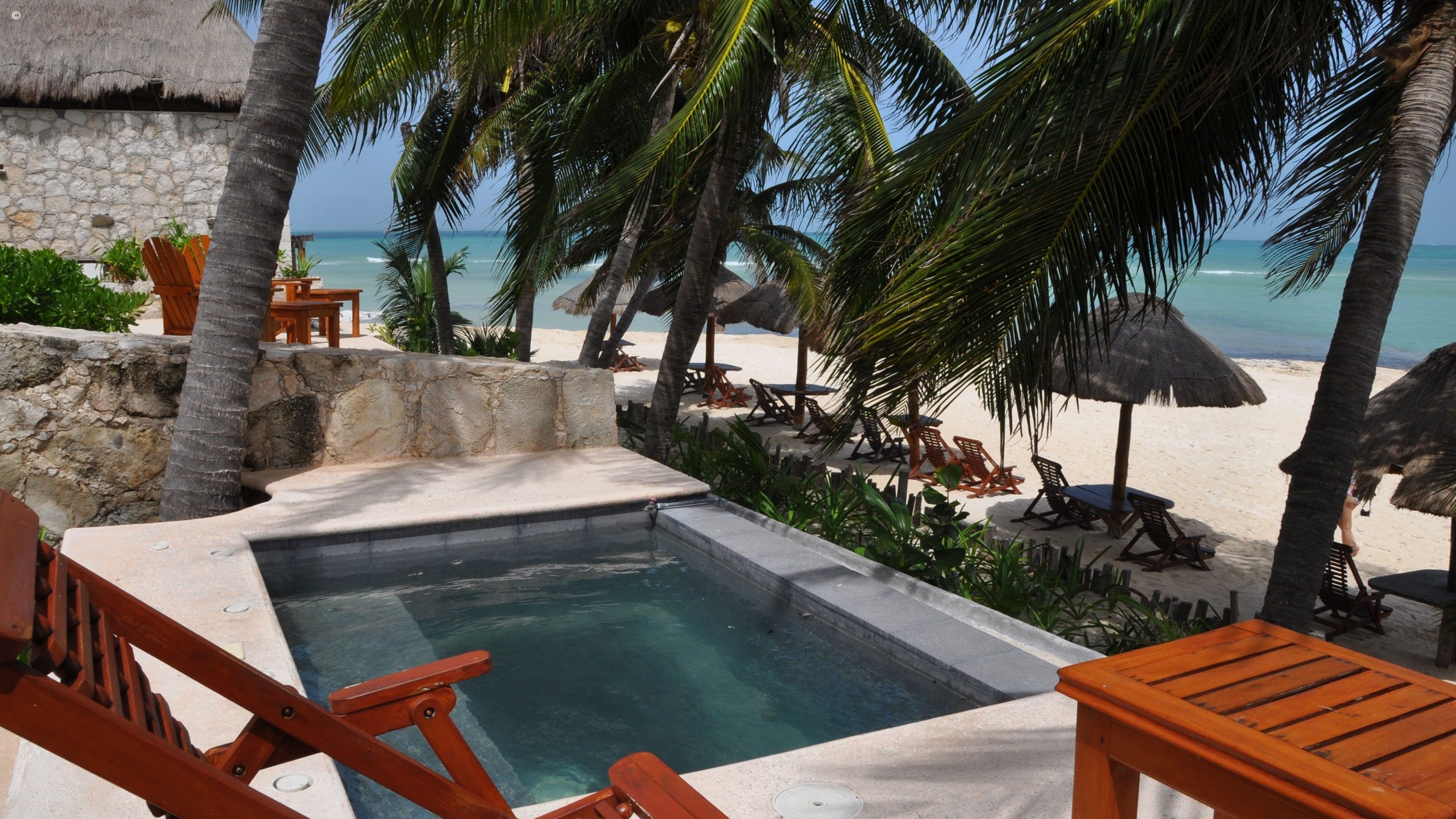 White washed walls, palapa-style roofs and sparse decoration throughout does everything to highlight the tropical greens and Caribbean blues around Na Balam, as well as instilling the whole place with an elegant ‘barefoot luxury’ feel. Its spacious rooms and suites are again simply decorated, and all have air conditioning and hand-made organic bath products.
