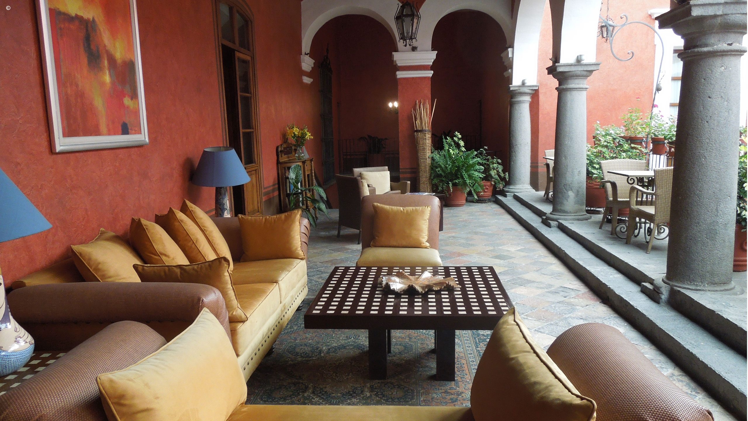 There are just ten guest rooms at the hotel, each individually named and tastefully decorated in a traditional style. Private balconies make for great people watching in this vibrant area. Other spaces in the hotel include its superb restaurant, Ekos, which serves a fantastic breakfast and the area’s signature dish, mole poblano, to be enjoyed in the beautiful central courtyard. Then sample a cocktail in the stylish bar, or choose a fine wine from the well-stocked cellar.