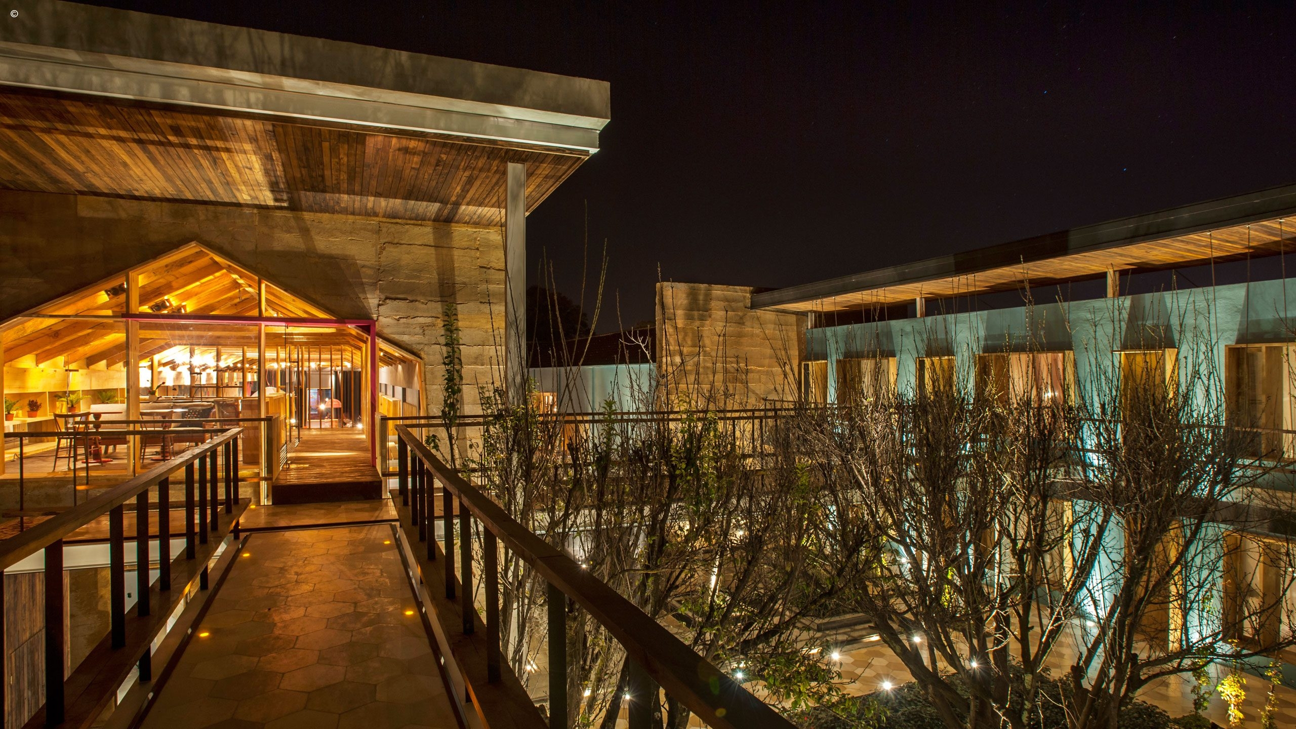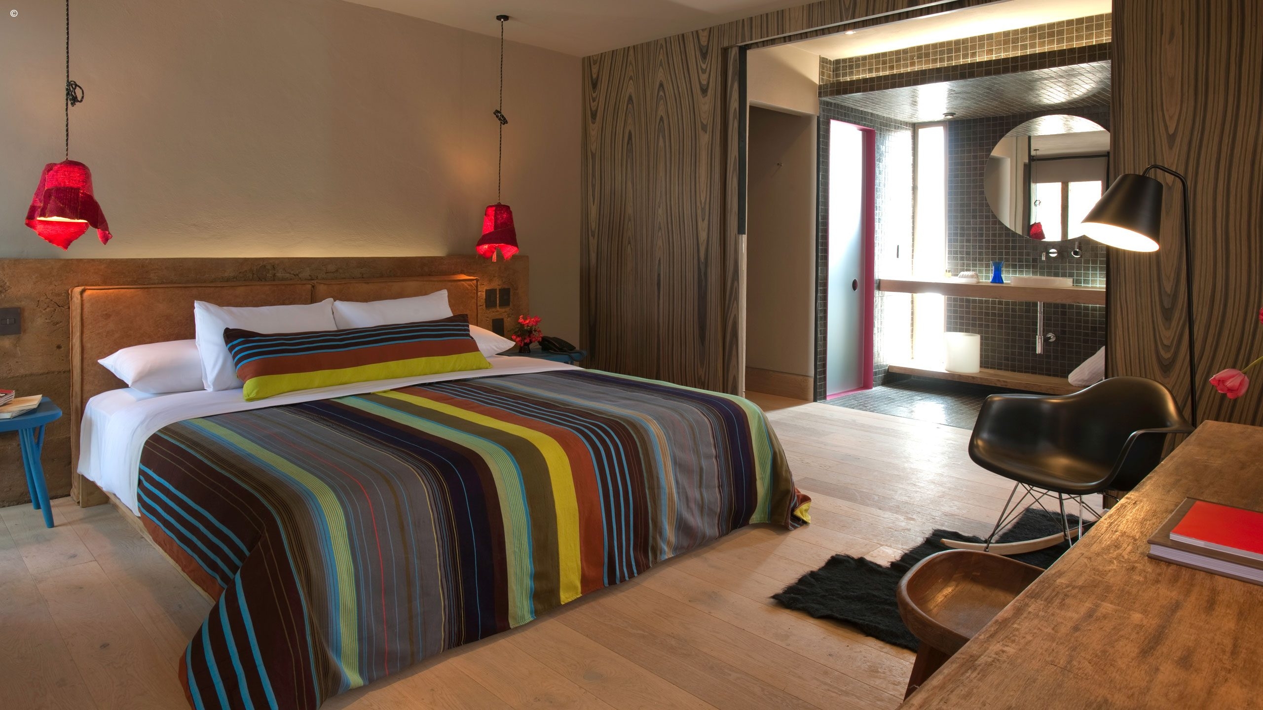 The décor is design-led, minimal and vibrant, incorporating lots of light and natural materials. Its rooms are bright, spacious and contemporary with its sheep’s wool carpets made locally and many contrasting patterns being played out. Surrounded by gardens filled with nut trees and fountains, there’s a manicured tranquility to the hotel and at night, when the rooms and surround are all lit up, a stylish warmth also.