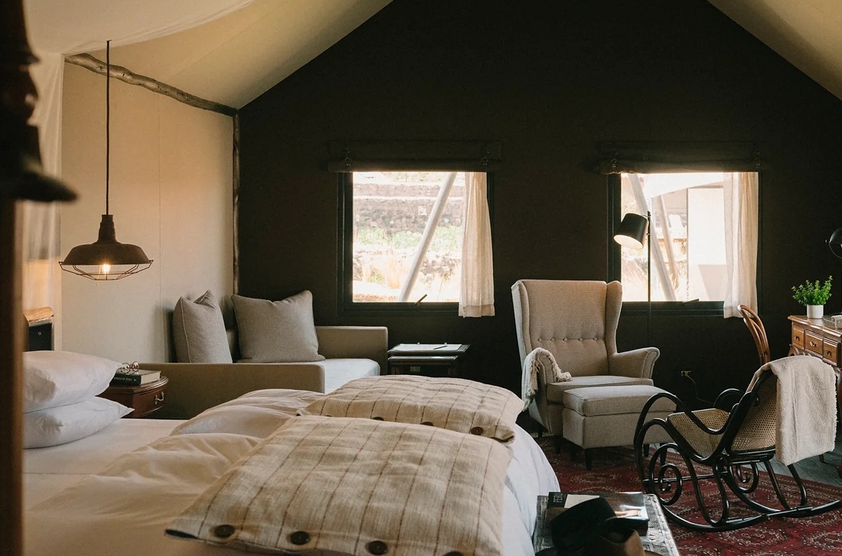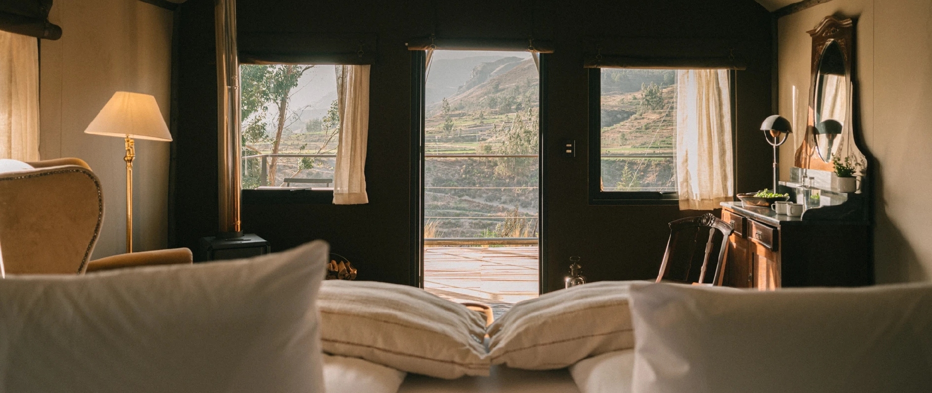 Nestled deep within the Colca Valley, PUQIO is set in a landscape where volcanoes, expansive grasslands, and undiscovered pathways await daily exploration. Each room is inspired by the original canvas tents of first Andean explorers, whilst earthen adobe rooms blend harmoniously into the surrounding high desert landscape. Outdoor showers and cold plunges will rejuvenate your tired muscles, whilst writing desks provide an outlet for when creativity strikes.