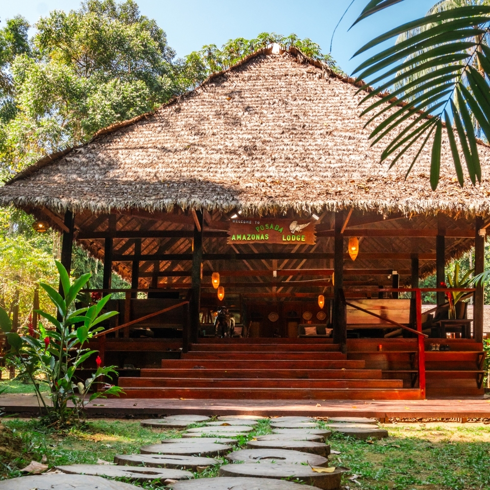 - Posada Amazonas, an initiative of the Native community of Ese Eja de Infierno, is located in the biodiverse Tambopata River region of Madre de Dios. This social impact project addresses threats like agriculture, illegal logging, and habitat loss. In a groundbreaking partnership, the community receives 75% of profits from the sustainable tourism business, contributing to the conservation of the 9,500-hectare reserve and protecting endangered species like the Amazonian turtle, caiman, macaw, and giant river otter.