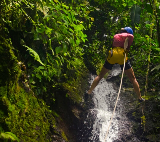 The canyoning tour combines hiking, climbing and rappelling. Explore El Tesorito Creek Canyon for a great introduction to rappelling, as it includes six short rappels of between 2 and 20 meters (6-65 feet) which will prepare you for a final rappel of more than 30 meters (90 feet). Then continue hiking through the creek and the forest back to the lodge.