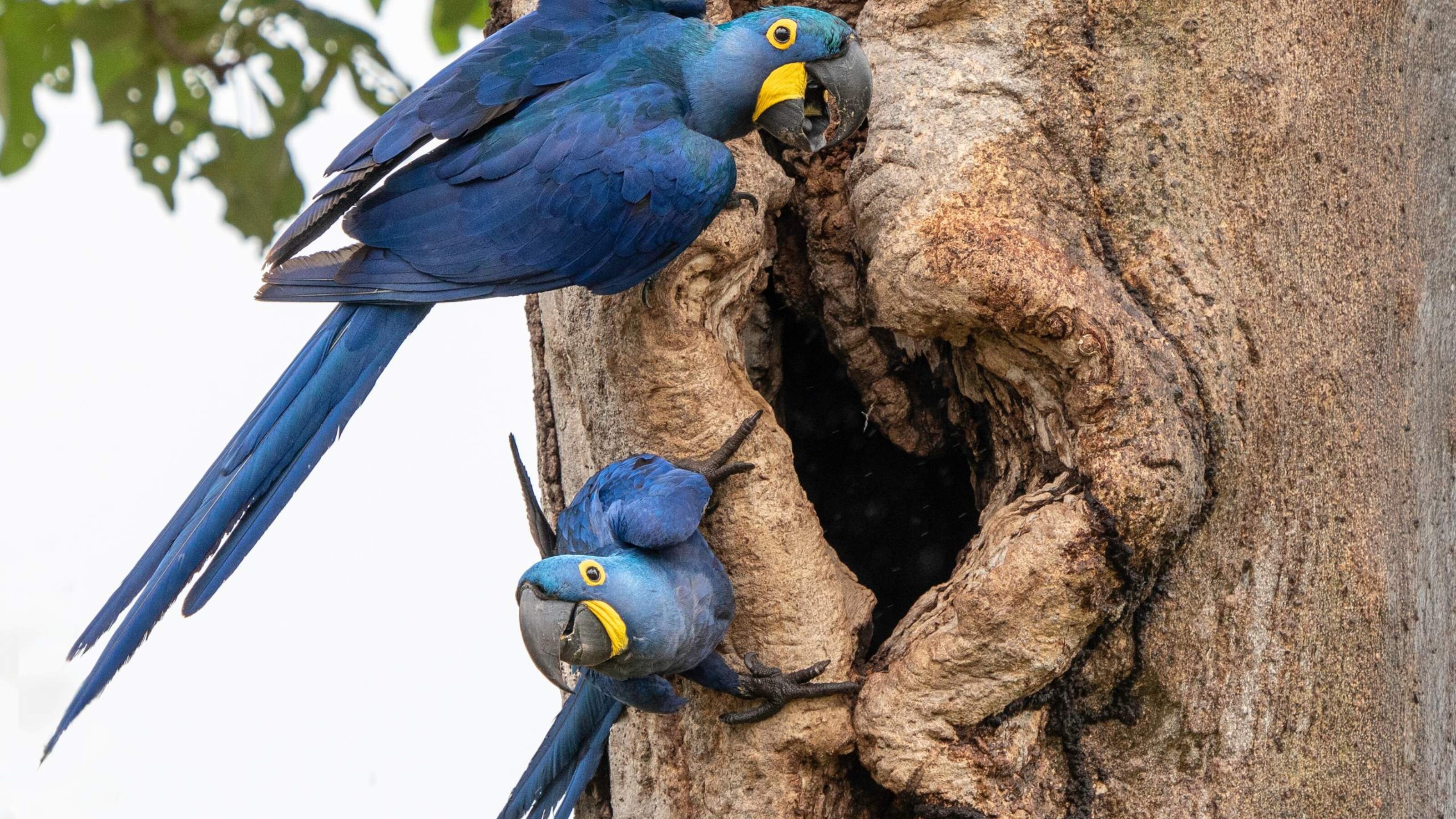 Few tropical bird species are more striking than the endangered hyacinth macaw with its deep royal blue plumage and gold-rimmed eyes. Admire the bird up close, learn about the history of the species, how it has suffered from acquisition by humans who covet it for its exquisite plumage, and how existing pairs are now being monitored and encouraged to reproduce.
