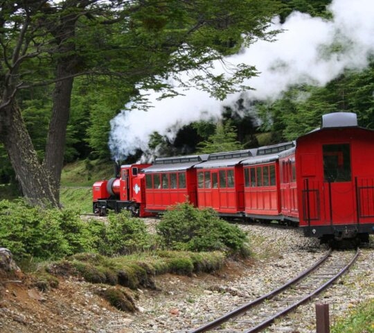 This, one of the two narrow-gauge tracks left in Argentina – the Ferrocarril Austral Fueguino- used to ferry prisoners from the island’s prison into the National Park to fell and chop trees. The “Trencito de los Presos’ departs from the Fueguino railway station steams slowly along the Pipo river until it reaches the Macarena waterfalls. The train continues into the National Park with its stunning views of Monte Susana, the Martial Glacier and the large swamp where the relics of the prisoners’ logging tasks can still be seen.