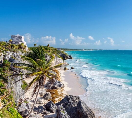The Mayan Riviera on the north-east coast of the Yucatán peninsula is Mexico’s premier relaxation destination. Here, turquoise Caribbean waters meet the barrier reef and gently lap pristine white sand beaches, and mangrove forests fringe crystal-clear cenotes. Enjoy therapeutic spa treatments, sailing excursions and the best restaurants.