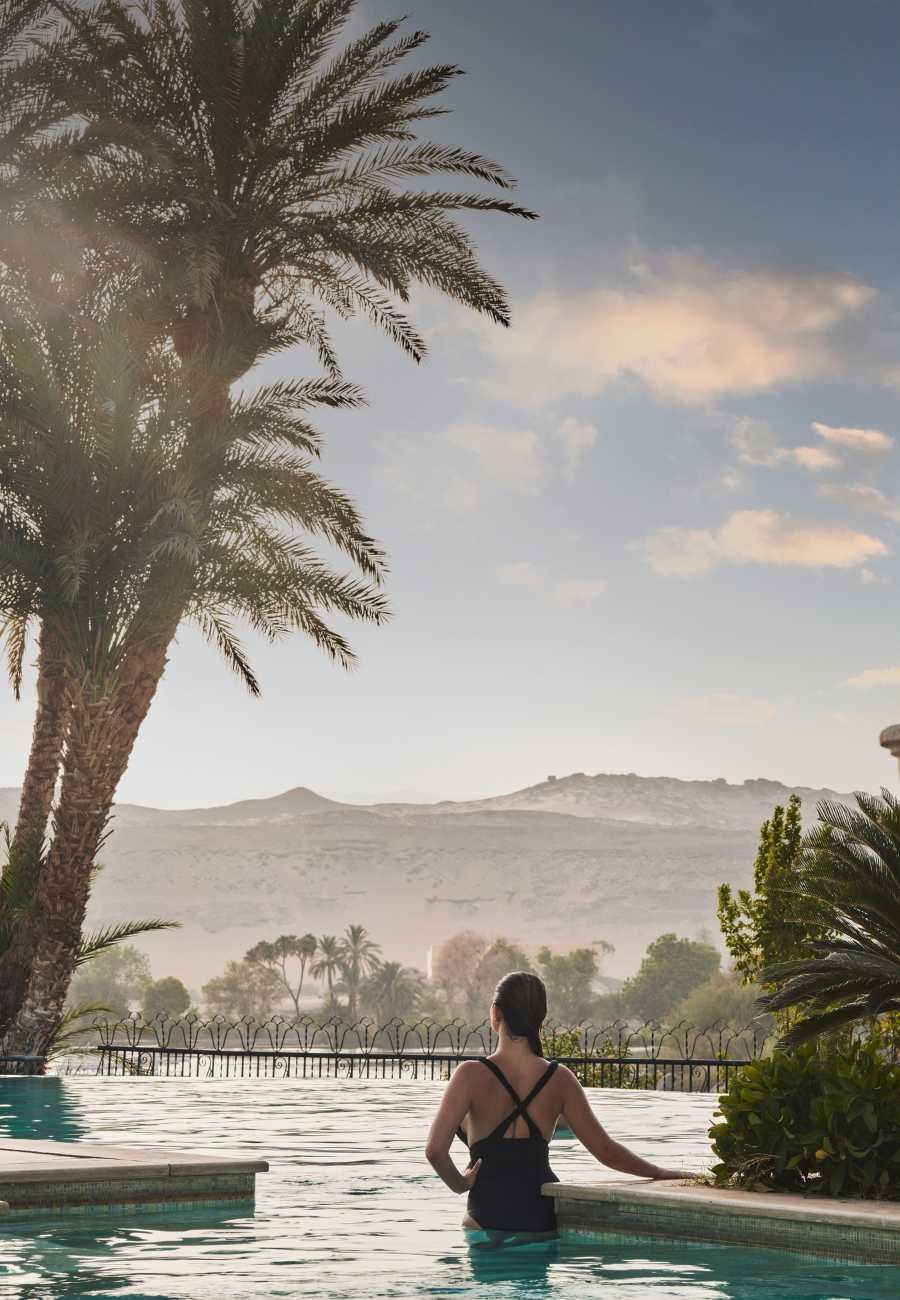 There are a range of facilities to enjoy here. The large outdoor pool overlooks the Nile and is surrounded by beautiful manicured gardens and comfortable loungers – the perfect place to unwind with a cool drink from the bar. There’s also an indoor Middle Eastern pool within the wellness area of the hotel where guests can enjoy a variety of treatments and massages.