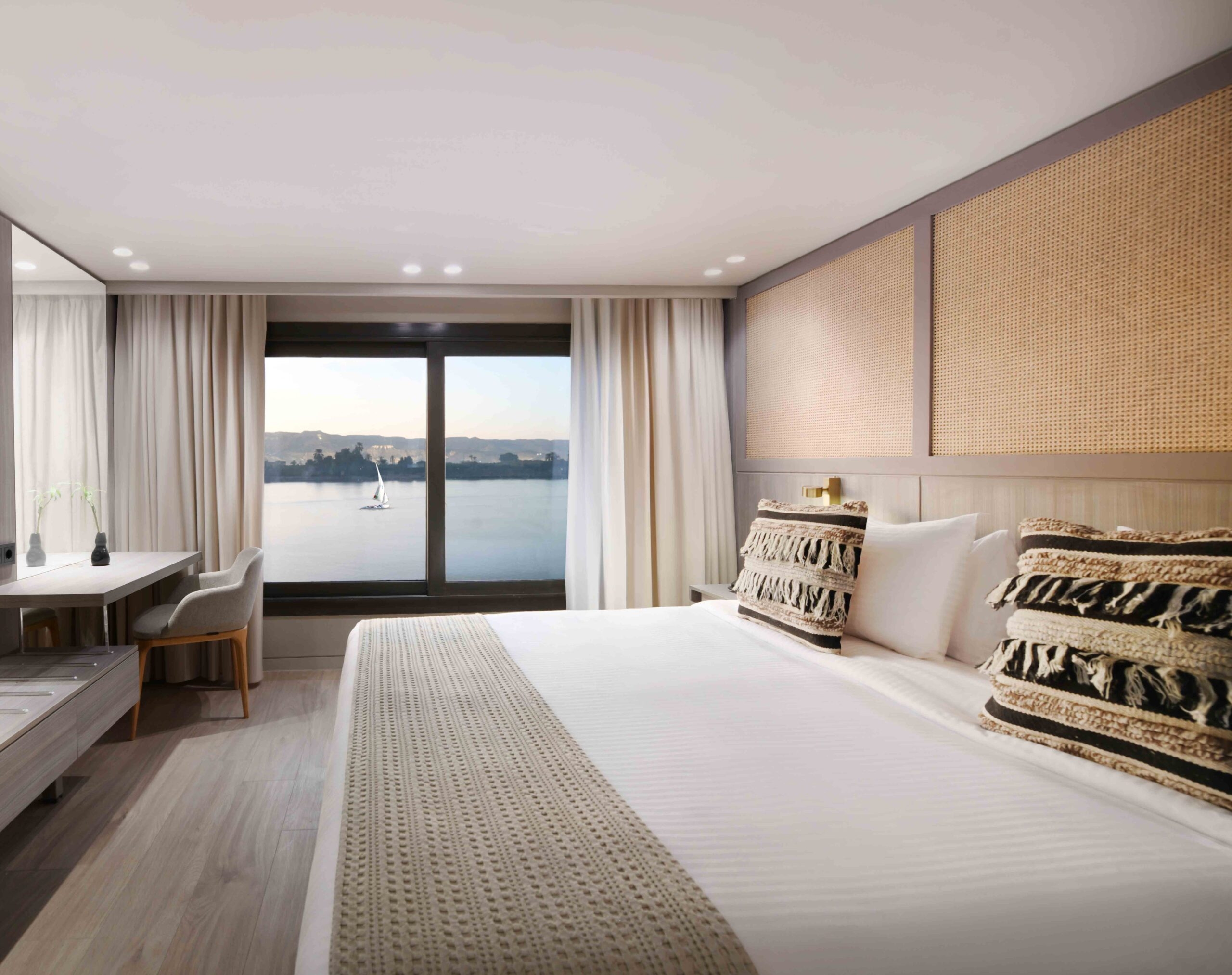 Surrounded by ancient history beyond the banks of the Nile, allow yourself to relax on board the Historia where Egyptian-inspired furniture hints at the past and luxurious furnishings offer you a comfortable cruise experience. Think fluttering curtains, perforated rattan screens and a colour palette of earthy shades with jewel tone highlights.