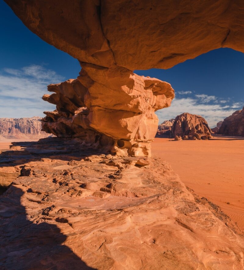 Embark on a Jeep tour of Wadi Rum and its seemingly endless shapes of sand and rocks