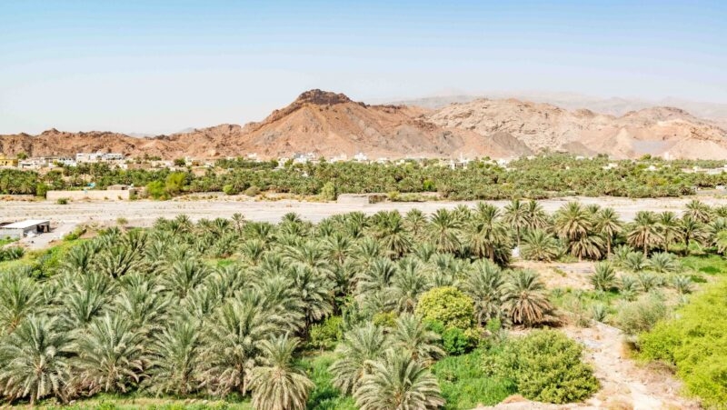 Walk to the ancient abandoned oasis of Birkat al Mouz, a UNESCO World Heritage site.