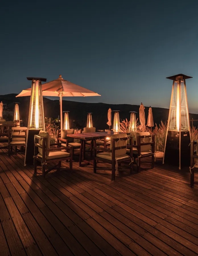 Arabic-inspired cuisine is on the menu here, with fresh, seasonal and local produce at the heart of every meal, and you can opt to indulge under the stars or above the cliffs with various private dining options.