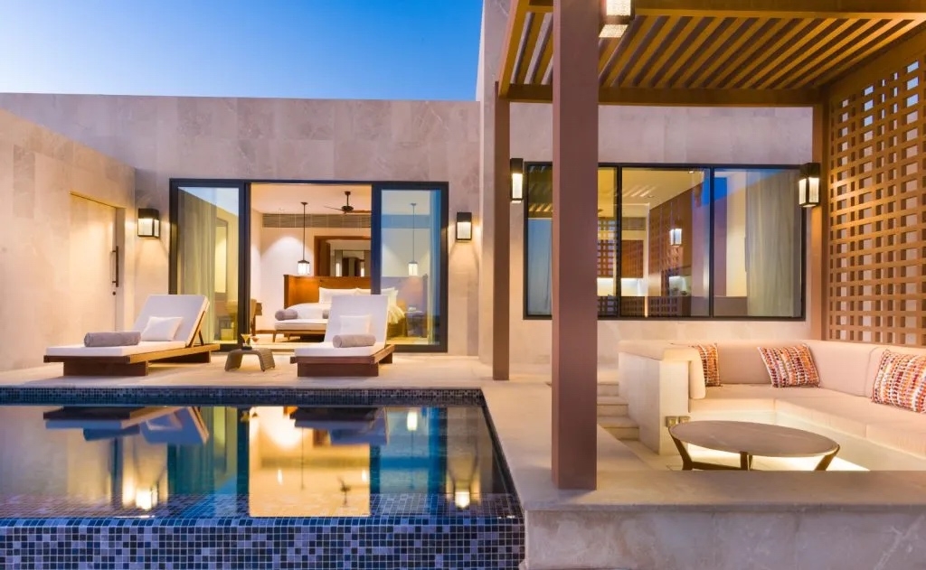 Alila’s architecture is striking: minimalist and modern but with Arabic influence, you’ll find perfectly-curved archways alongside crisp lines and clean, neutral colours which complement the desert landscape around you. Inside its 112 bedrooms, soft gowns and deep tubs add personal luxury, and outside are views of the rugged rocks or dreamy Arabian sea.
