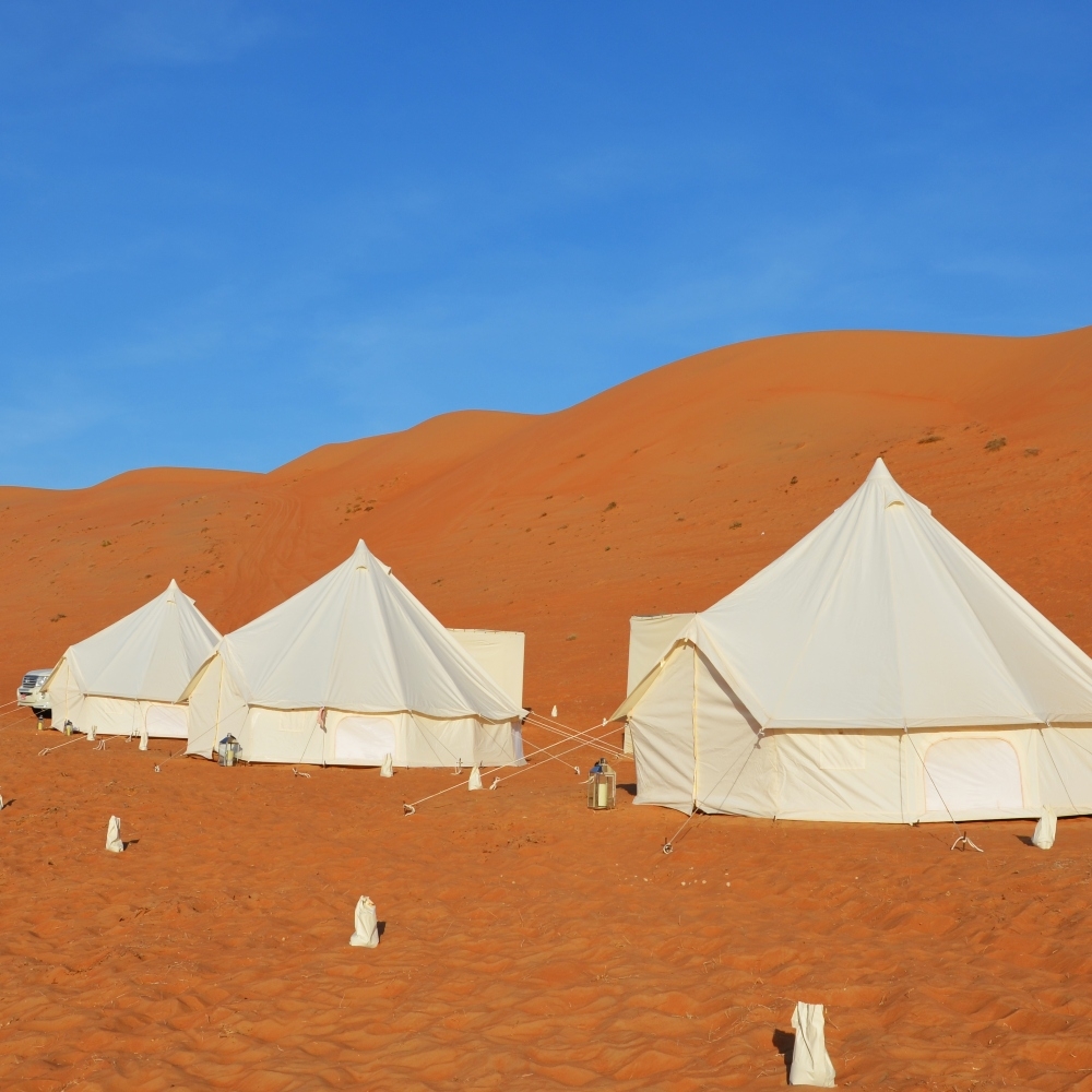 Once you’ve arrived, you’ll be greeted with traditional Arabic hospitality, with sweet tea and dates on offer within this small village of Bedouin-style tents that will become your home for the night. Expect plush mattresses and soft, white linens as good as any fixed hotel, and bathroom tents with soft towels and luxury products to wash the sand from between your toes.