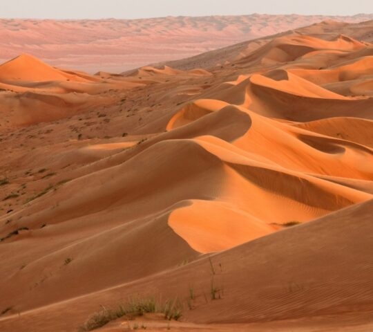 In Nizwa, you’ll stop at the silver market and the round tower fort. Nearby, you can also visit Birkat al Mauz, an abandoned village surrounded by date palm plantations and an ancient irrigation system called “Falaj” (UNESCO World Heritage Site). Continue your exploration upwards onto Jebel Akhdar, the green mountain. The area is one of the most fertile in the country and its plantations grow apricots, pomegranates, peaches, grapes, almonds, walnuts and of course the roses that are the base of the popular Omani rose water. In spring, when the roses bloom, the visit of a rosewater factory is a special experience. You’ll also stop at the Saiq Plateau and Diana Point, named after the late Princess of Wales, who visited in 1990.