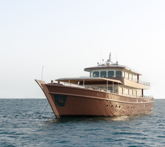 Embark from the Al Mouj Marina in Muscat and cruise towards the Dimaniyat Islands onboard a luxury dhow. The Dimaniyat Islands are a protected and uninhabited group of nine beautiful islands 18km off the Batinah Coast north of Muscat. The journey there takes around two hours and you will spend a couple of nights exploring the islands; swimming, snorkelling, stand-up paddle-boarding and if you wish, diving.