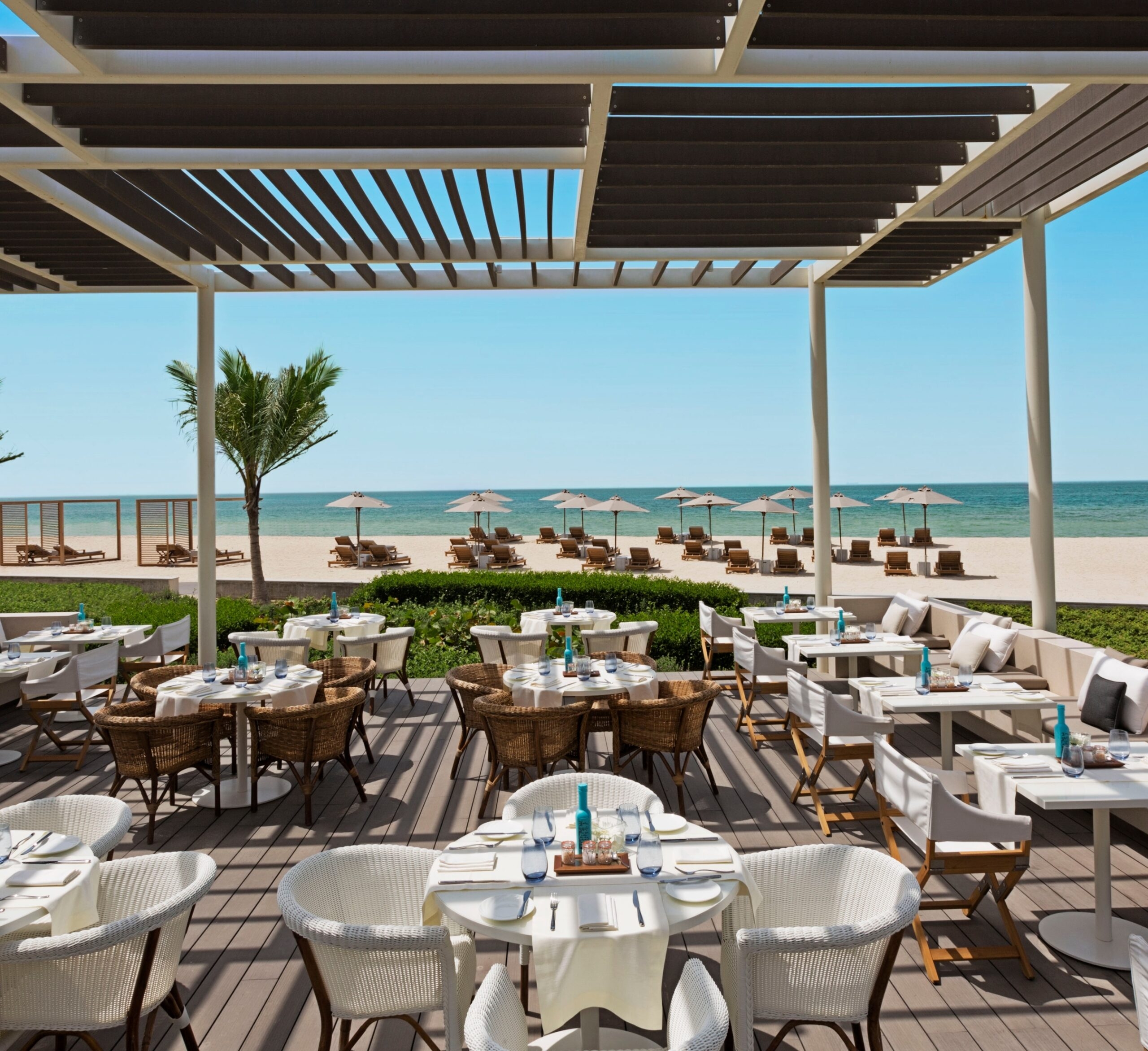 Indulgence is the name of the game at Oberoi Al Zorah, as once you’ve spent the day on their sandy beach sipping cocktails, you enjoy evenings in one of six bars and restaurants, each with their own personality. Aquario has a Mediterranean menu and overlooks the brilliant white-sand beach, while Vinesse is all about international flavours in a modern glass restaurant that floats atop the surrounding pools.