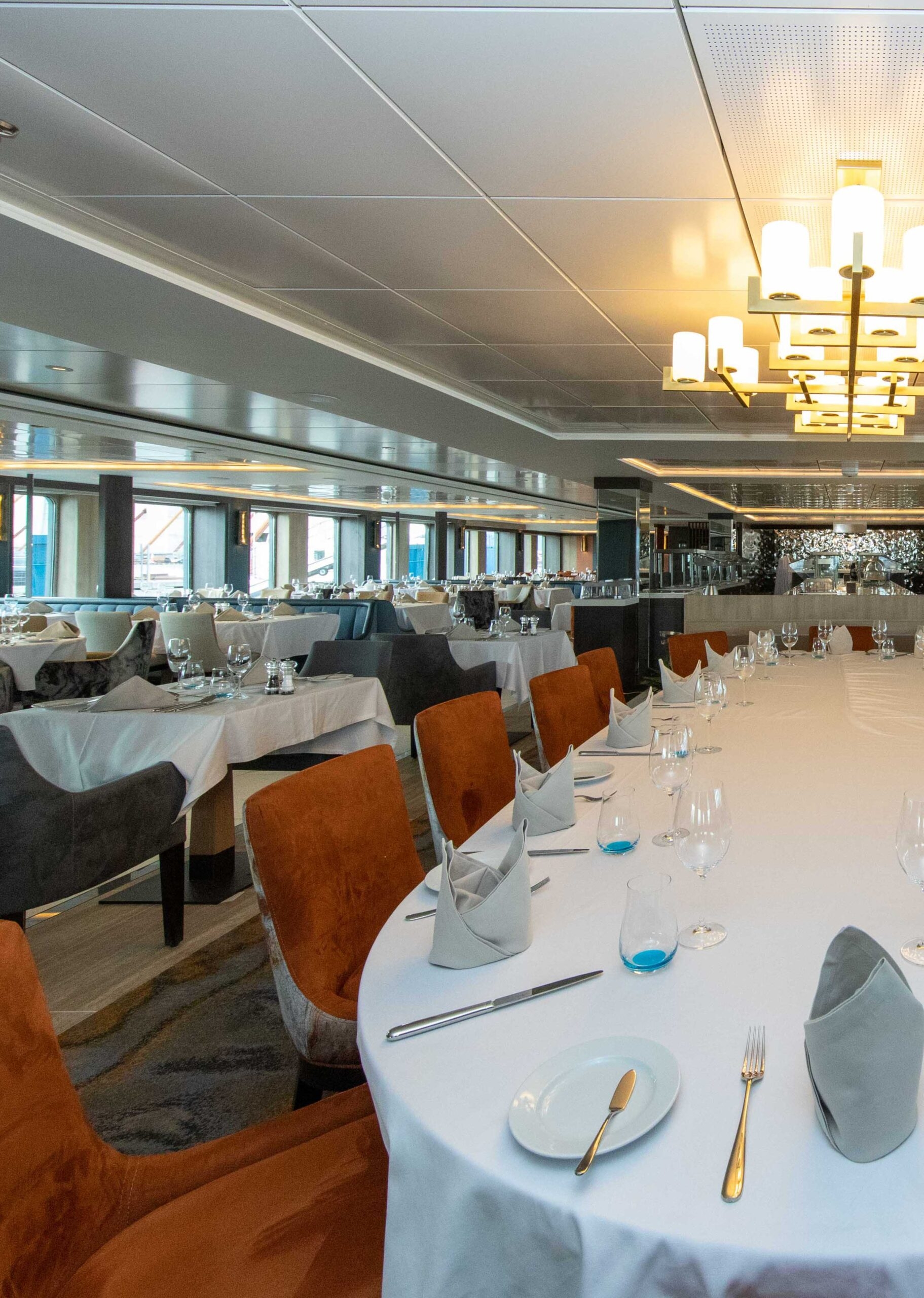 If it’s an active cruise you’re looking for, then kayaking, camping and stand-up paddleboarding can also be arranged. Otherwise, get your steps in on the outdoor track, keep to your exercise programme in the small gym, and unwind with a treatment or two at the spa.