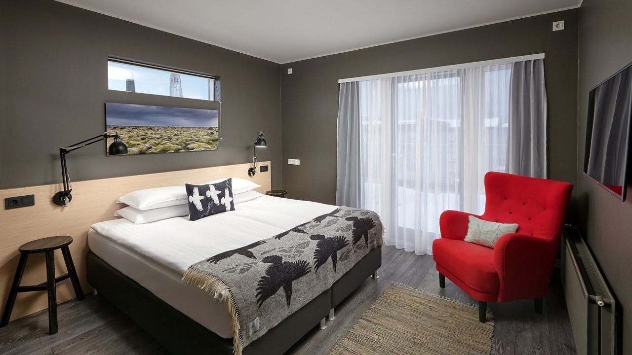65 spacious, calm and stylishly Nordic rooms are available in a range of sizes, ideal for recharging your batteries after a day of exploring Iceland’s magnificent countryside or returning from the city centre, which is just one step away. Every room features access to high speed internet, HD TV and a walk-in shower in the bathroom. Fourth floor rooms allow access to a great balcony where you can enjoy a panoramic view of the colourful city and beyond to the fullest.