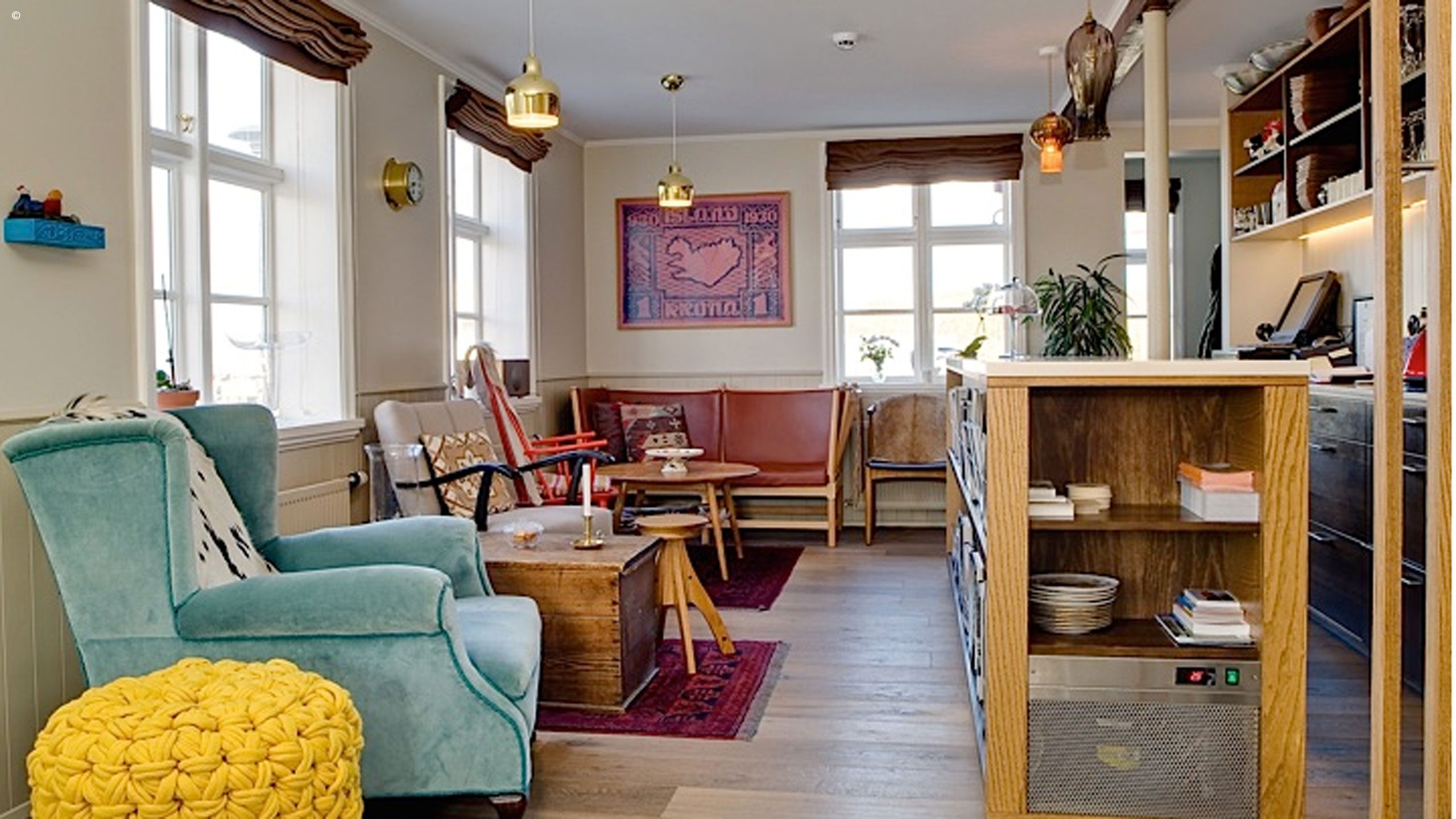 Sitting by the harbour in the centre of the picturesque coastal town of Stykkishólmur, this pretty, little 1860s house has been lovingly restored to preserve its classic heritage and create a charming boutique hotel.