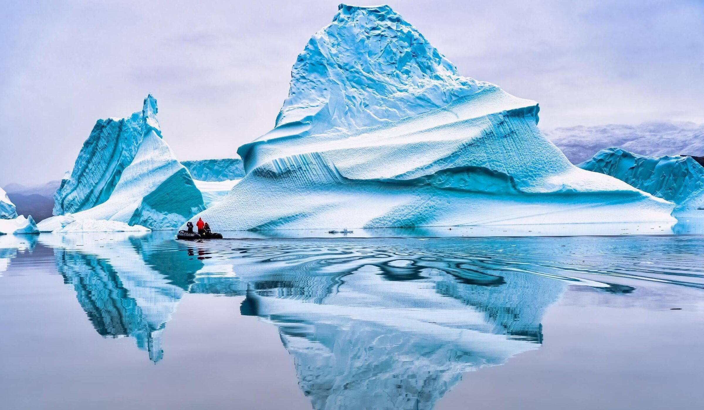 A view of Scoresbysund fjord's colossal icebergs in Greenland.